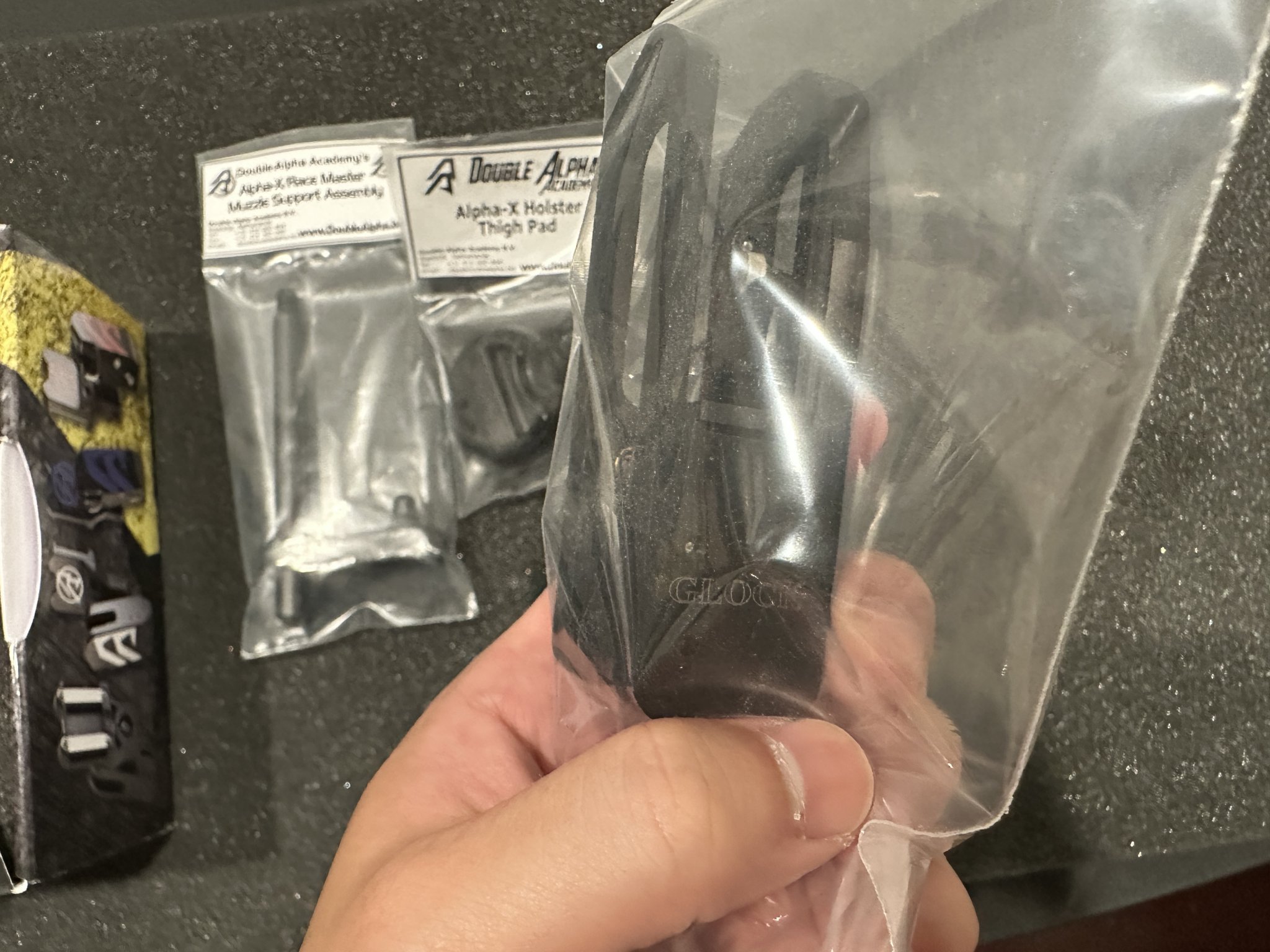 BNIB Double Alpha Alpha - X holster RH with glock insert, thigh pad, and muzzle support
