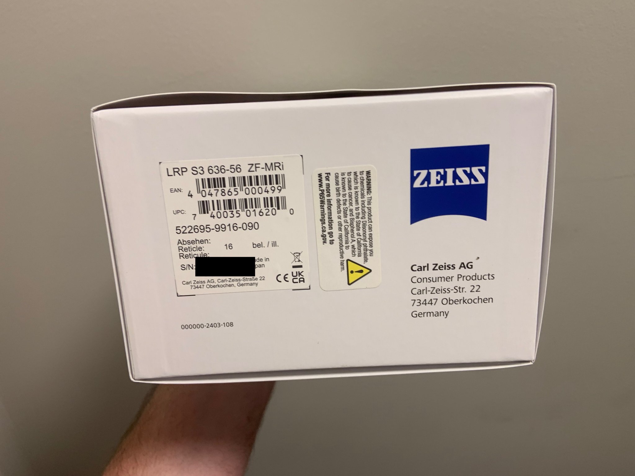 Brand New In Box Zeiss S3 6-36x56 ZF-MRi Scope. Has never been out of the box except to take these photos. Never mounted. Perfect,. brand new condition.