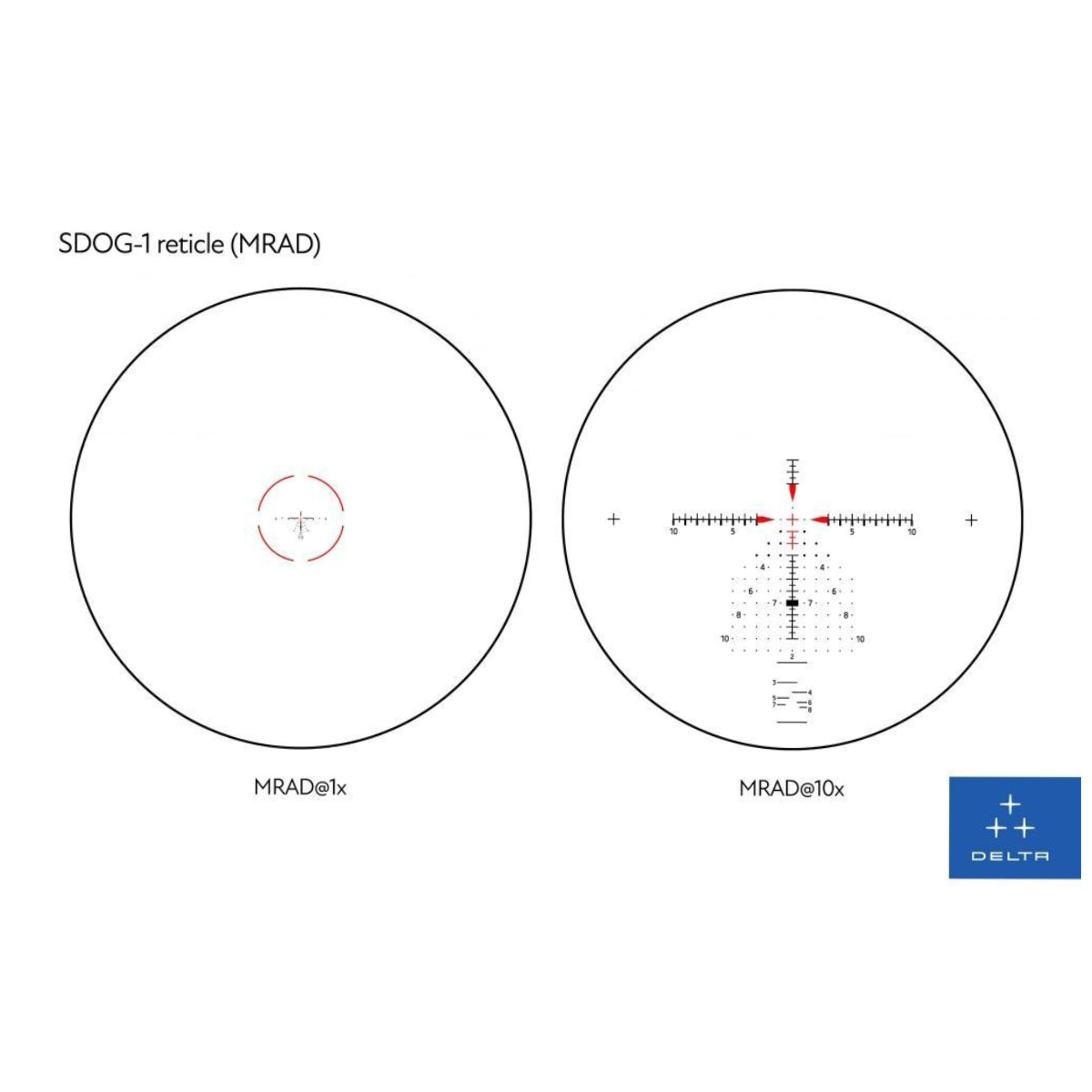Embrace the future of targeting with the first focal plane SDOG-1 reticle, further enhanced by illuminating cross and ring elements. Whether it's dawn or dusk, the Delta Stryker guarantees precise aiming with counter-clockwise adjustments.