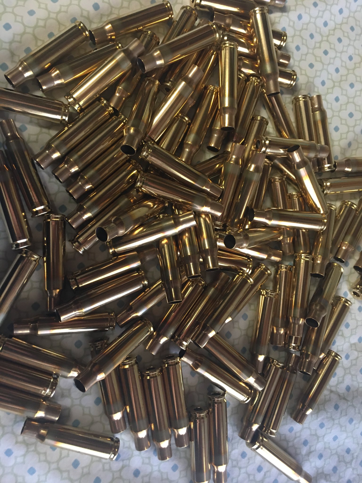 I'm having trouble with spotty brass after wet tumbling. This is without pins, just room temp water, a bit of Simple Green, and a 1/4 Teaspoon of lemishine. They come out looking fantastic, I rinse them very will with completely soft water, then into the oven at 175 to dry,