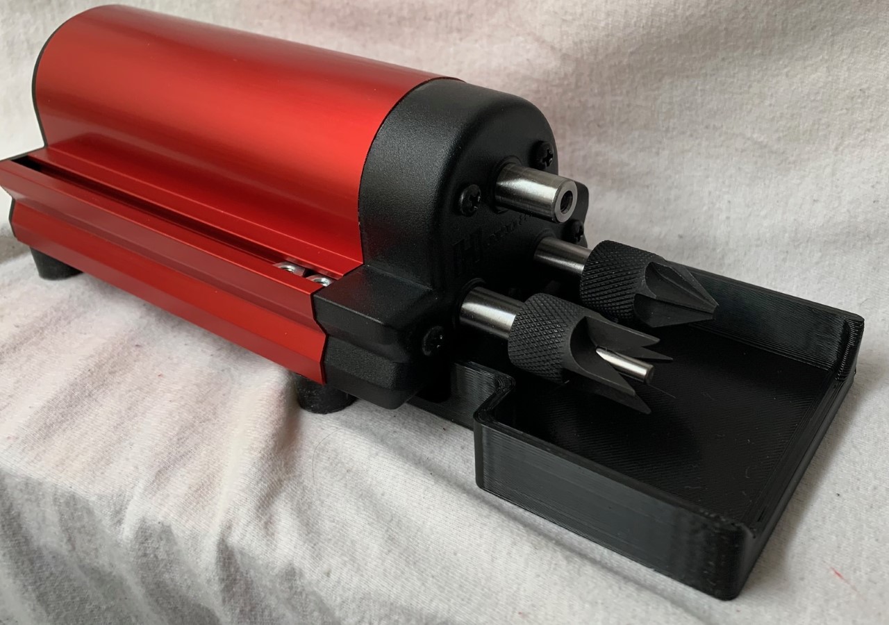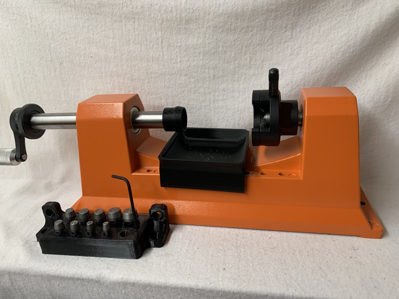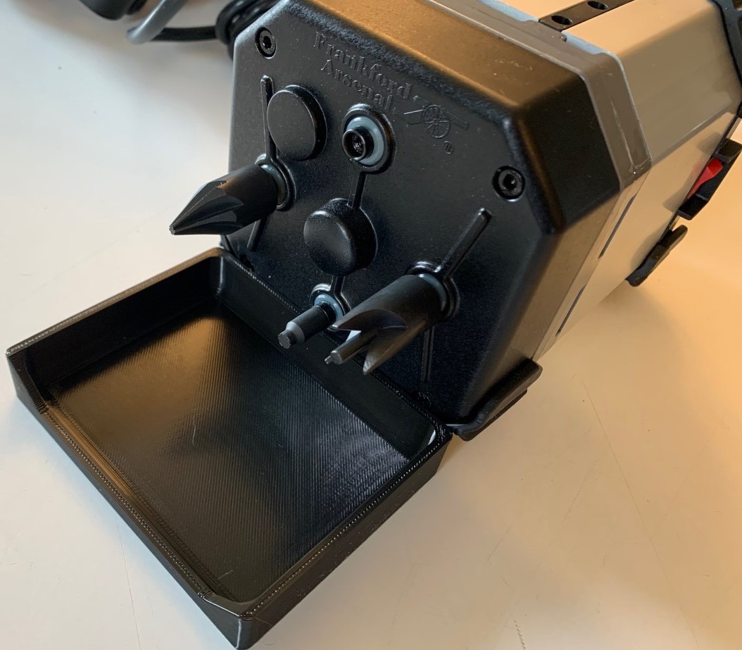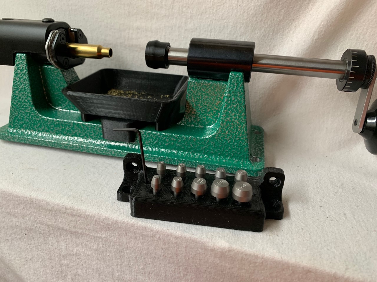 $25 TYD Hornady Cam Lock Trimmer Brass Catcher: The catcher tray is magnetically attached to the blade cover so all you have to do is pull it off, empty it and place it back on. Also includes the Pilot rack that holds the allen keys and pilots. this pilot rack can be mounted to the table, wall or just sat on top of a bench/shelf.
