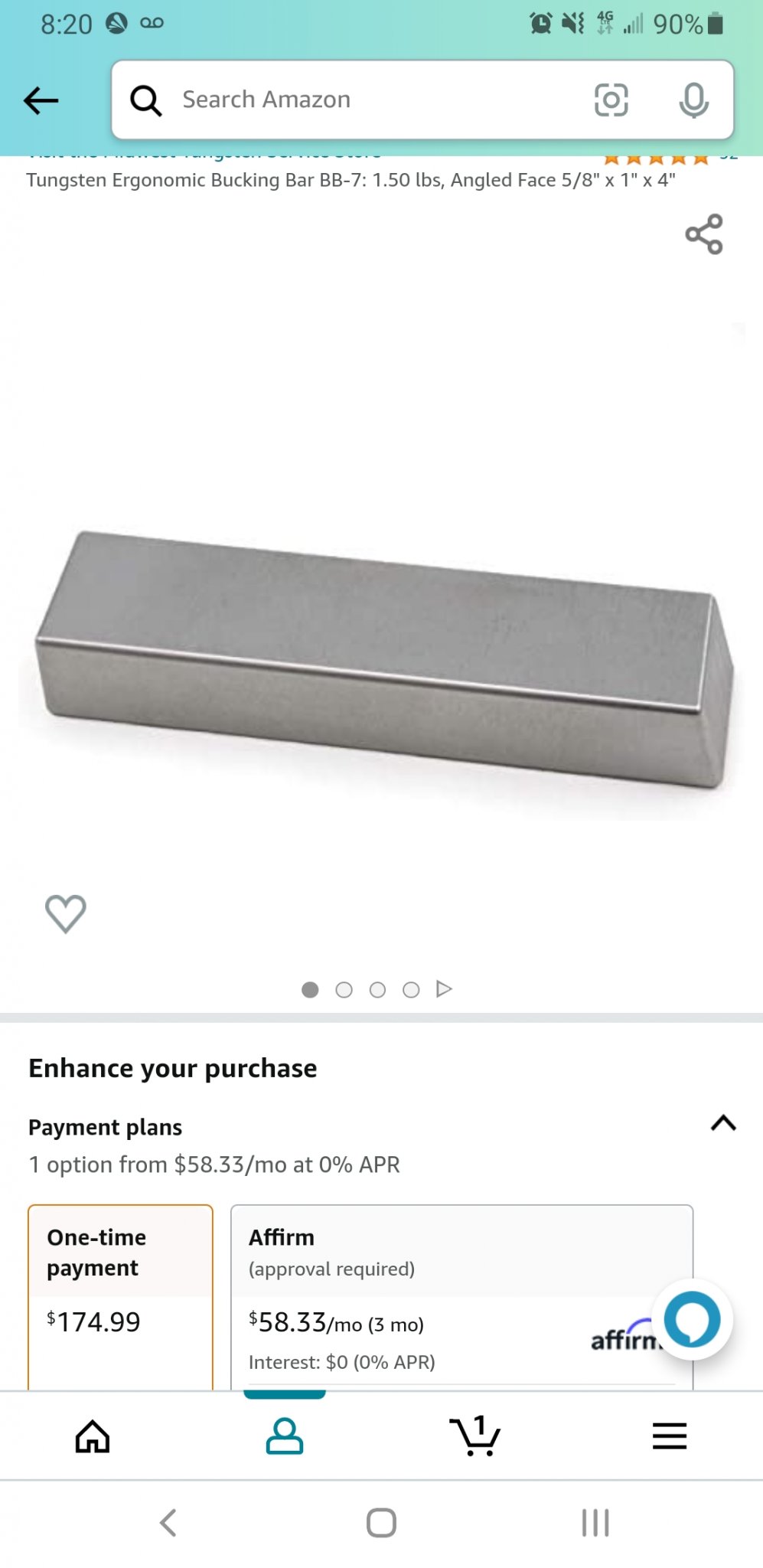 Here you go. It is a tungsten bucking bar. They have gone up a bit since I got mine but it still adds a good amount of weight in a small package. Be aware that drilling it is not fun.