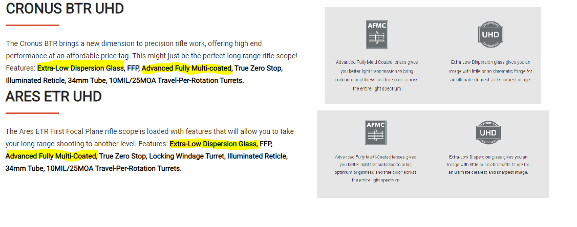 Reticle, okay this is my only small complaint. The truth is I like "all .2 mil" tree reticles for exacting holdovers and holdoffs, it's my personal preference, you may not feel this way! I do like the line thickness, it's .03 mil for the main crosshair and is also for the center dot. See here for all reticle dimensions https://athlonoptics.com/wp-content...-Ares-ETR-APRS1-FFP-IR-MIL-Reticle-Manual.pdf Basically on low magnification I use the reticle as kind of a tree looking, upwards pointing arrow, duplex reticle because the center dot can't be seen, though with the illume on the reticle sticks out dramatically, especially useful on 4.5x to 8x No drama on mid power, I can see the reticle fine without illume. On high magnification the center dot and the rest of the reticle actually appears large. Remember that in a FFP scope "no matter how small or large the reticle appears" all those dimensions remain exactly the same on "any magnification". I do like center dots, so I can suffer the .5 mil hashes as my compromise for the benefit of having 30x which is half of why I wanted to get the ETR. I'll give this a check, only because I'm picky when it comes to reticles, and I know that 90% of shooters wouldn't care one way or another. Also in many ways this reticle blows most other reticles
