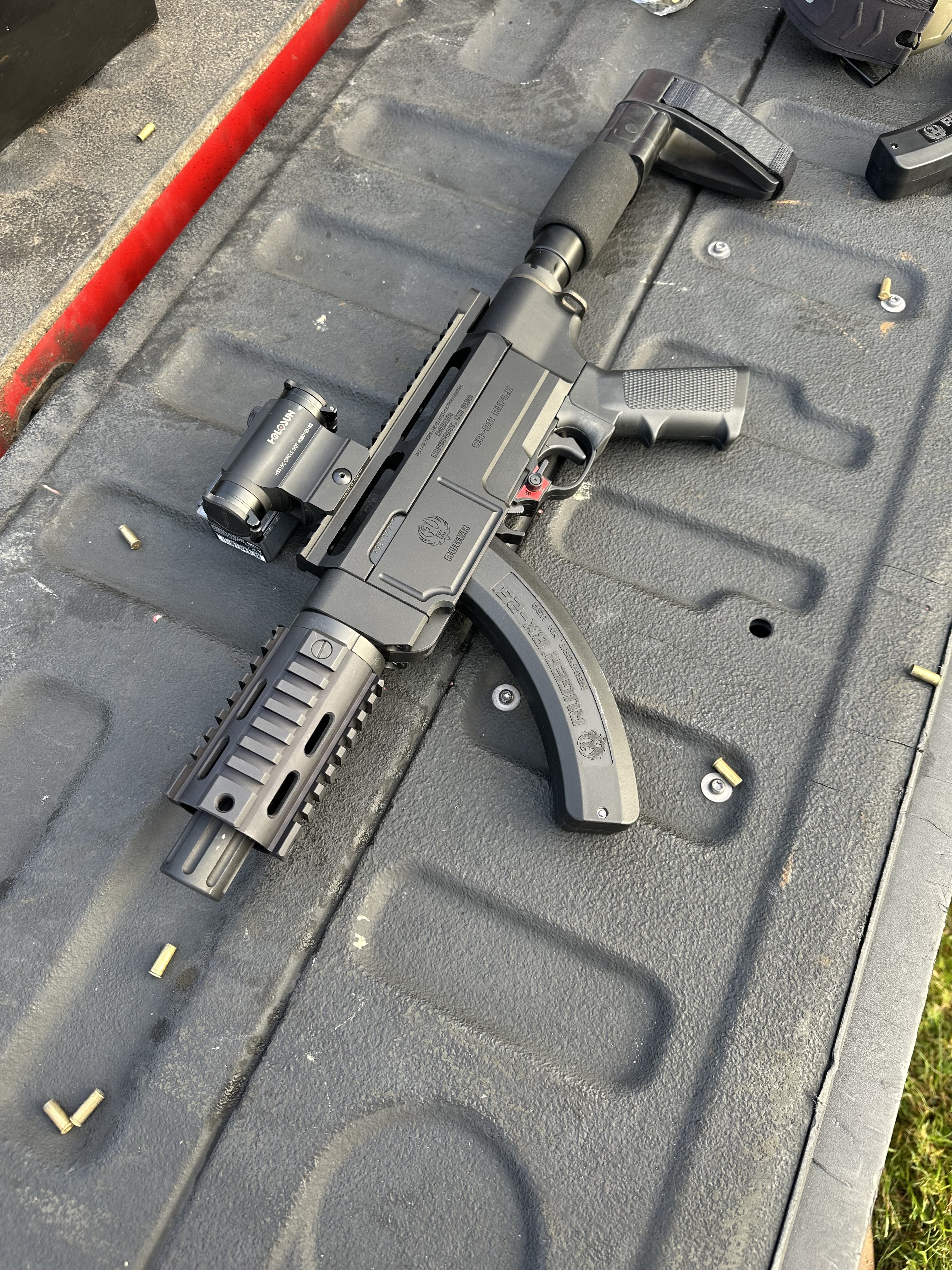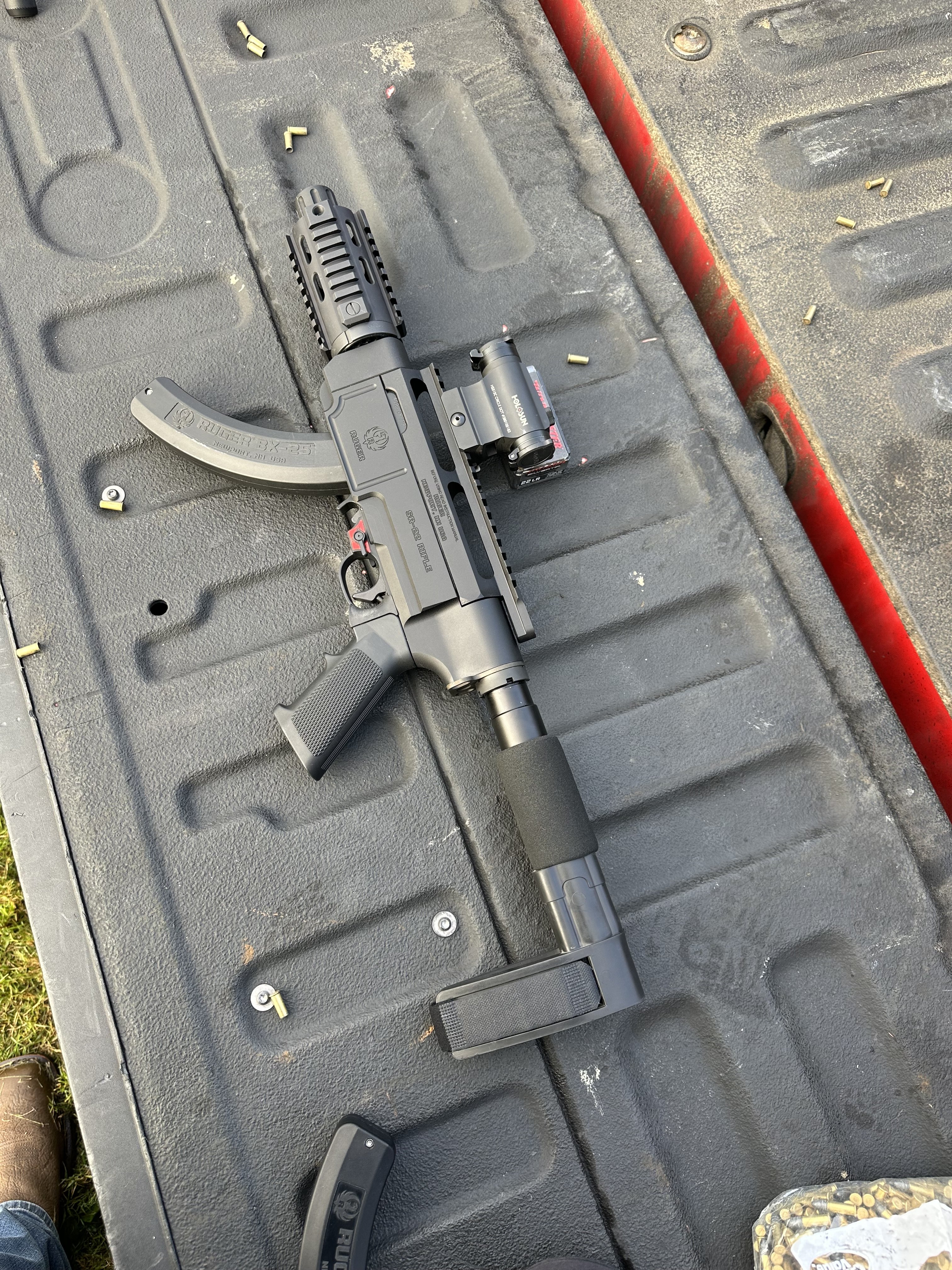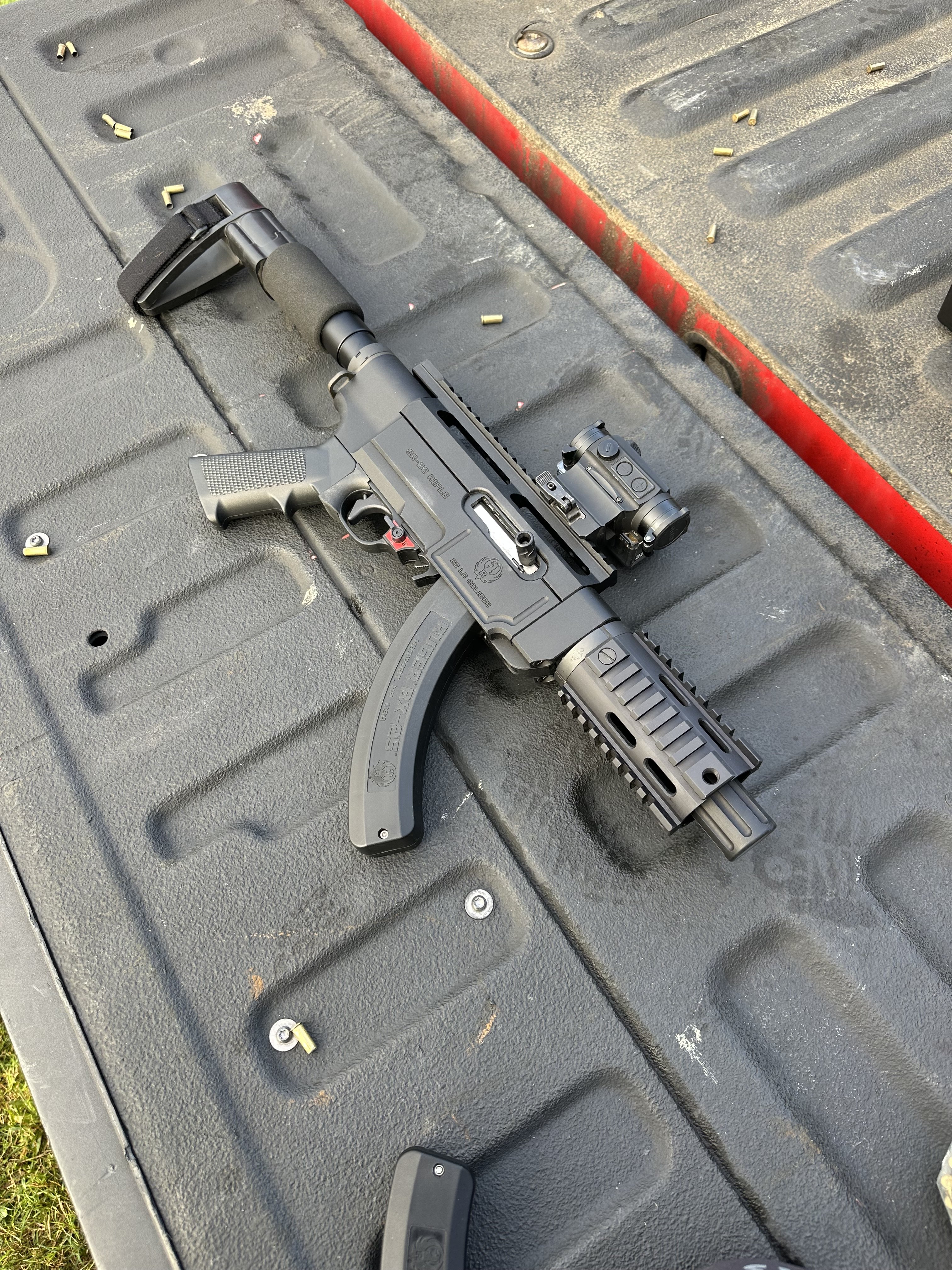 -Ruger branded aluminum chassis that accepts AR15 buffer tubes and hand guards