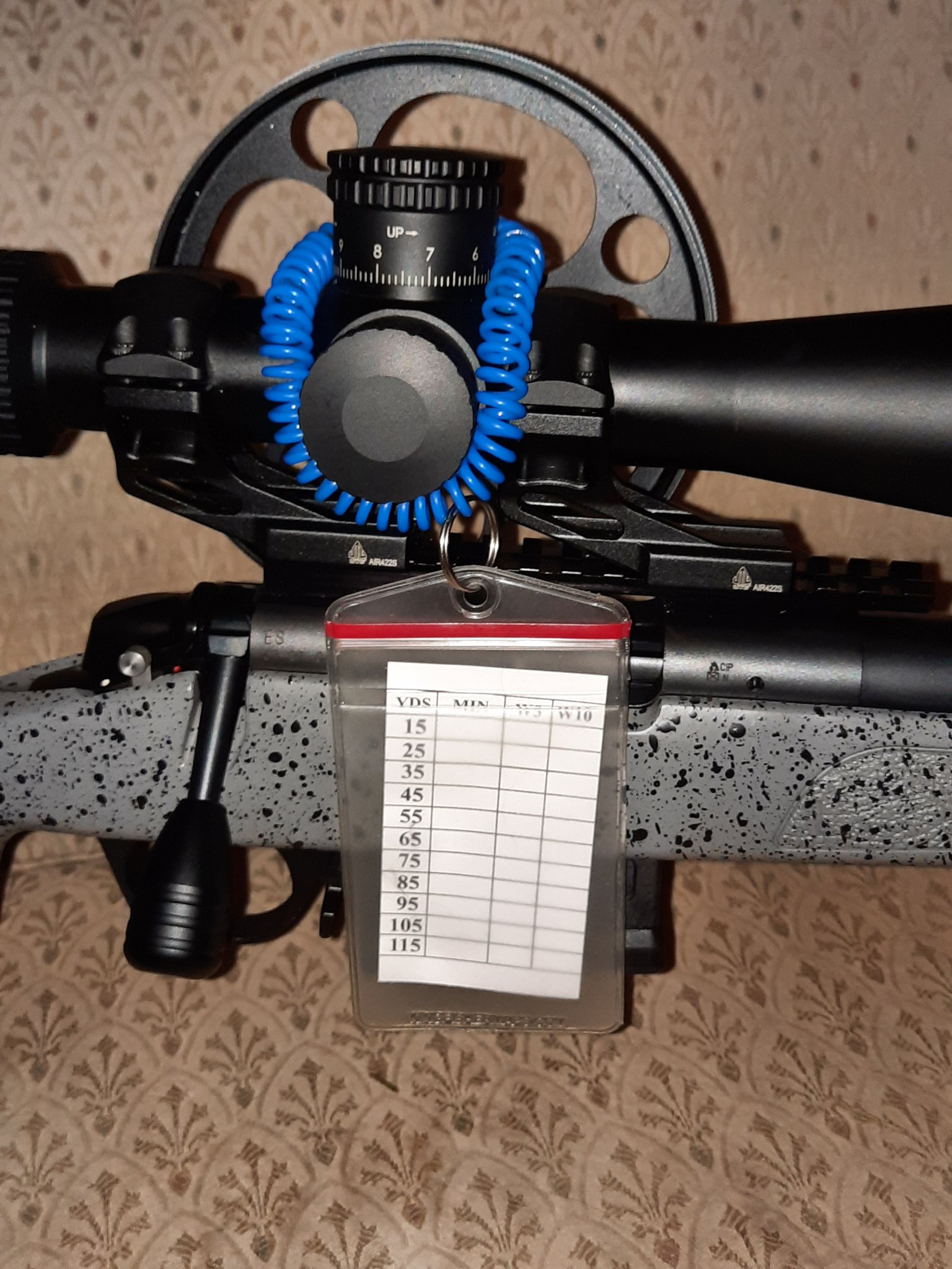 The blue bungie is in the office supply area. I add notes in the upper and lower margins like gun, barrel to scope axis