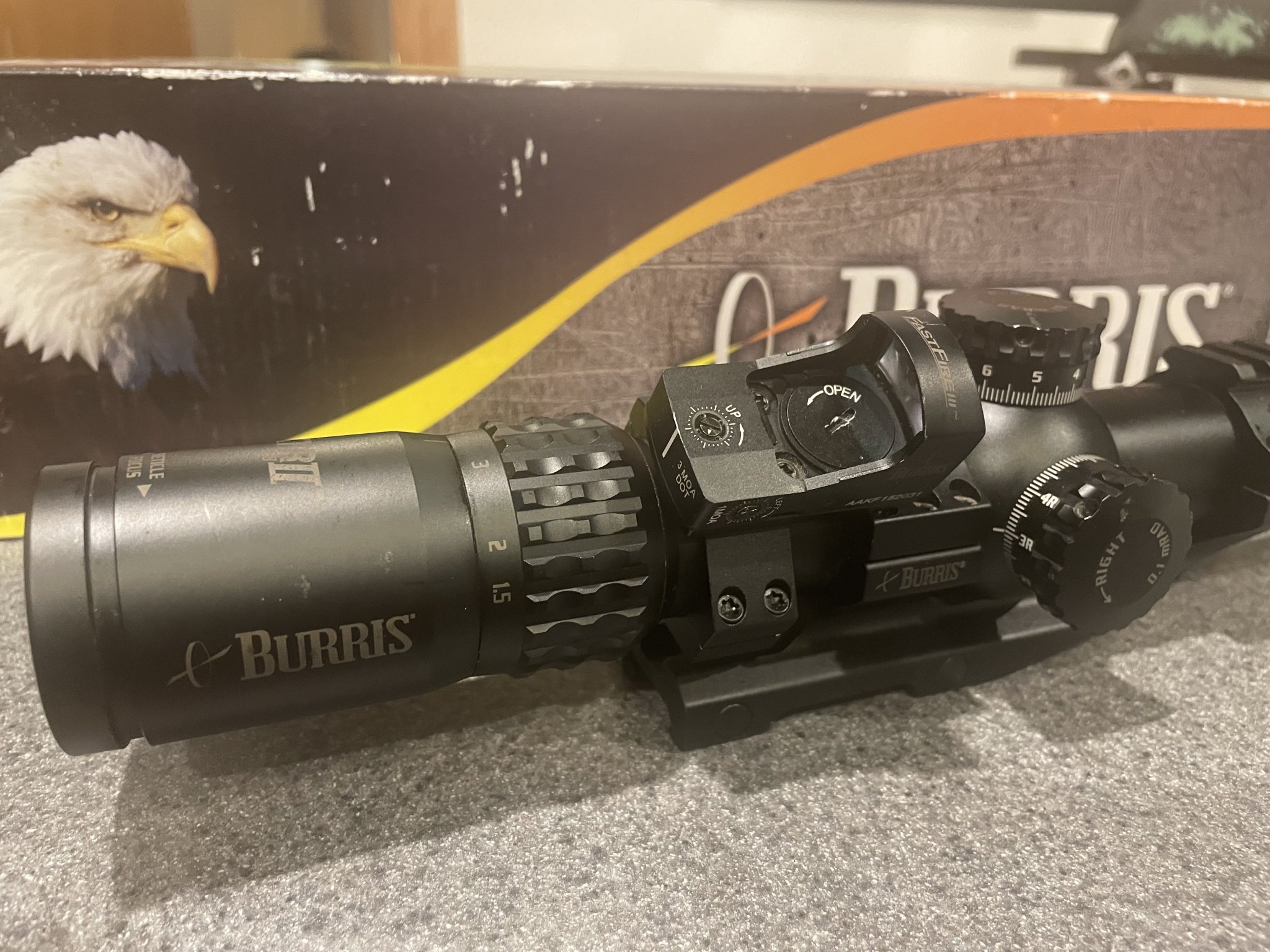 For Sale: Burris XTR II 1.5-8x28 Optic w/Fastfire III red dot mounted at 45 degree. Unit mounted in an Burris 30mm cantilever mount. Optic has seen light use and works great. Comes with original box and paperwork. $SOLD