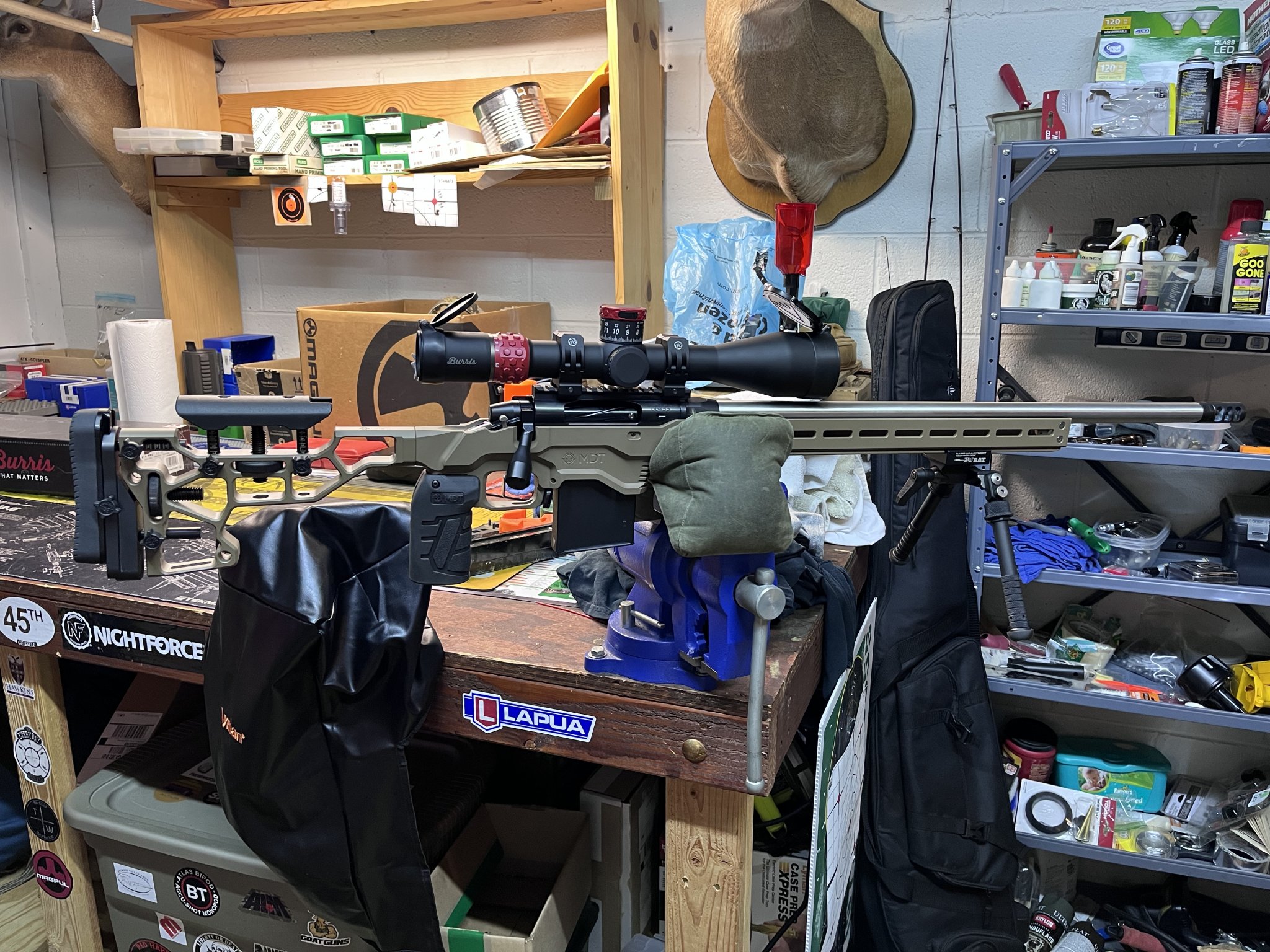 Had a T storm roll through when I shooting, so had a wide variety of conditions. Optically, I think it's a damn good scope, although it has it's limitations. I found the sweet spot to be at about 20-22 power with the parallax set at about 600. Shot targets at 100, 500, 700, and 1100. Got hits on all (100 was zeroing of course) center plate, so I can make a reasonable assumption the scope is tracking true. Great reticle, and for me it became much more useable and less cluttered in the 18-22x range. I could see myself shooting this scope at that mag range, which is a little more than I usually shoot at. The wide FOV helps a lot. Overall, pretty happy with it so far. Hopefully she holds up.