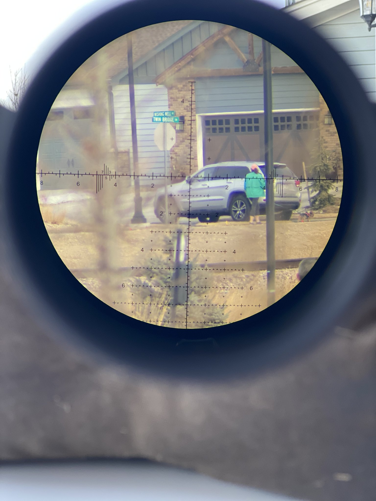 The first thing I noticed is the texture is a little less smooth than some other scopes. Not rough, but less smooth. Like it’s almost a spayed coating versus being anodized, and it’s more matte. Turrets feel really nice, mag ring moves smoothly, parallax is smooth as well. The sun shade appears to be the same color lol. It is very fine threaded so it takes a moment to screw on. The capped windage turret is smaller so this could be good or bad for some. I hold wind now so I like it. One slightly odd thing I noticed while playing with the elevation turret. The marks would line up till around 2 mils and start being off slightly till you made it back around to zero, then the same thing on the next revolution. Not off much, like .05 mil max, but off none the less. It seemed like the the engraving was off but it was on all 3 elevation turrets. I could offset zero slightly and get them to line up in the 5+ mil range but off down low. I chalked it up to being early production and would get it checked out later. Turns out the issues completely went away when I zeroed my rifle. It’s a mystery now. I have 19.1 mils of travel up and every mark is dead on. Zeroing the turret was fast and easy. Open lever, pull turret, push back on at zero, and close the lever. Zero stop is already set. The SCR2 looked really nice and very usable. The red color on the scope could be a hot topic of debate, think vortex brown, more on that in a bit.