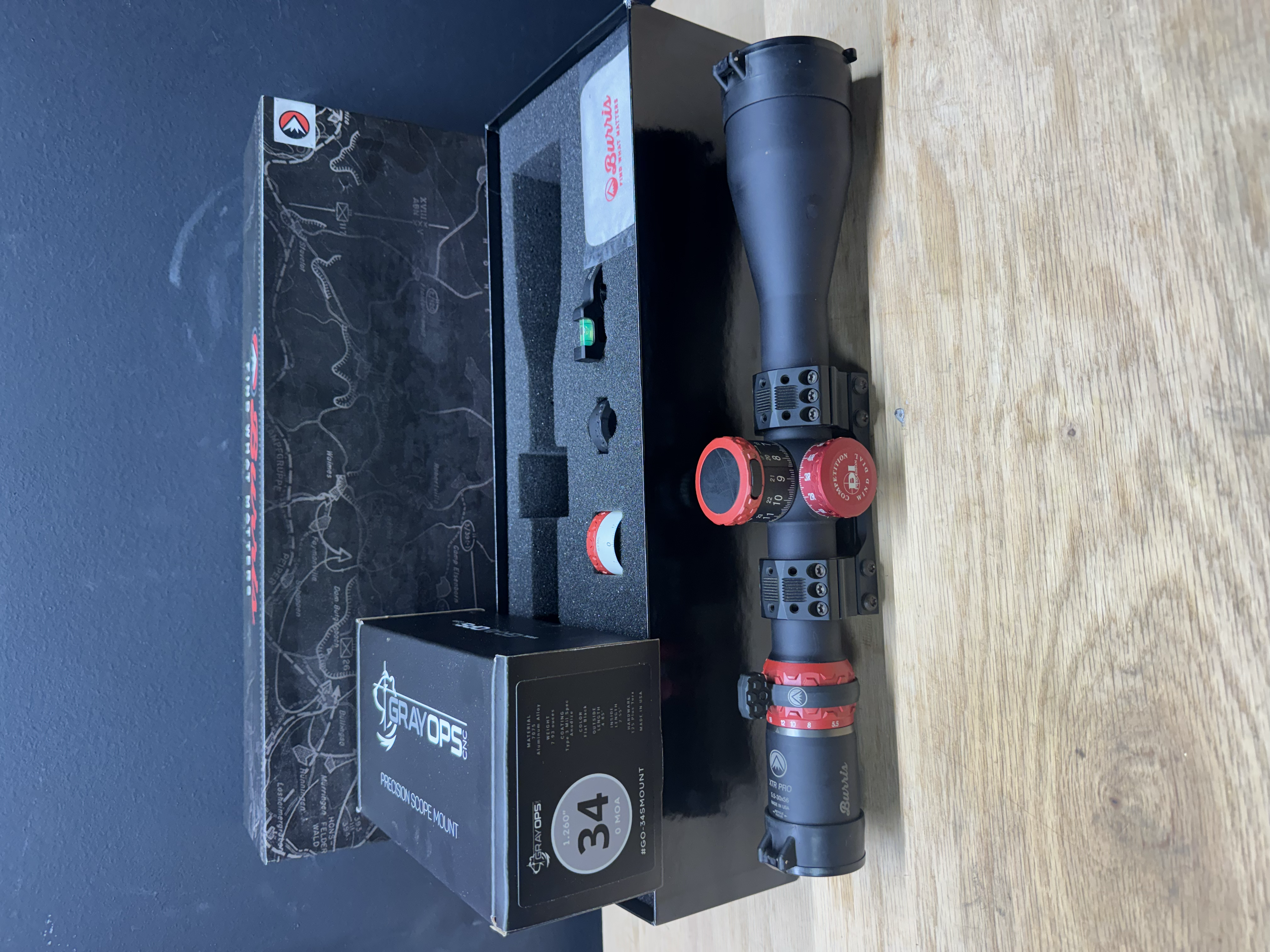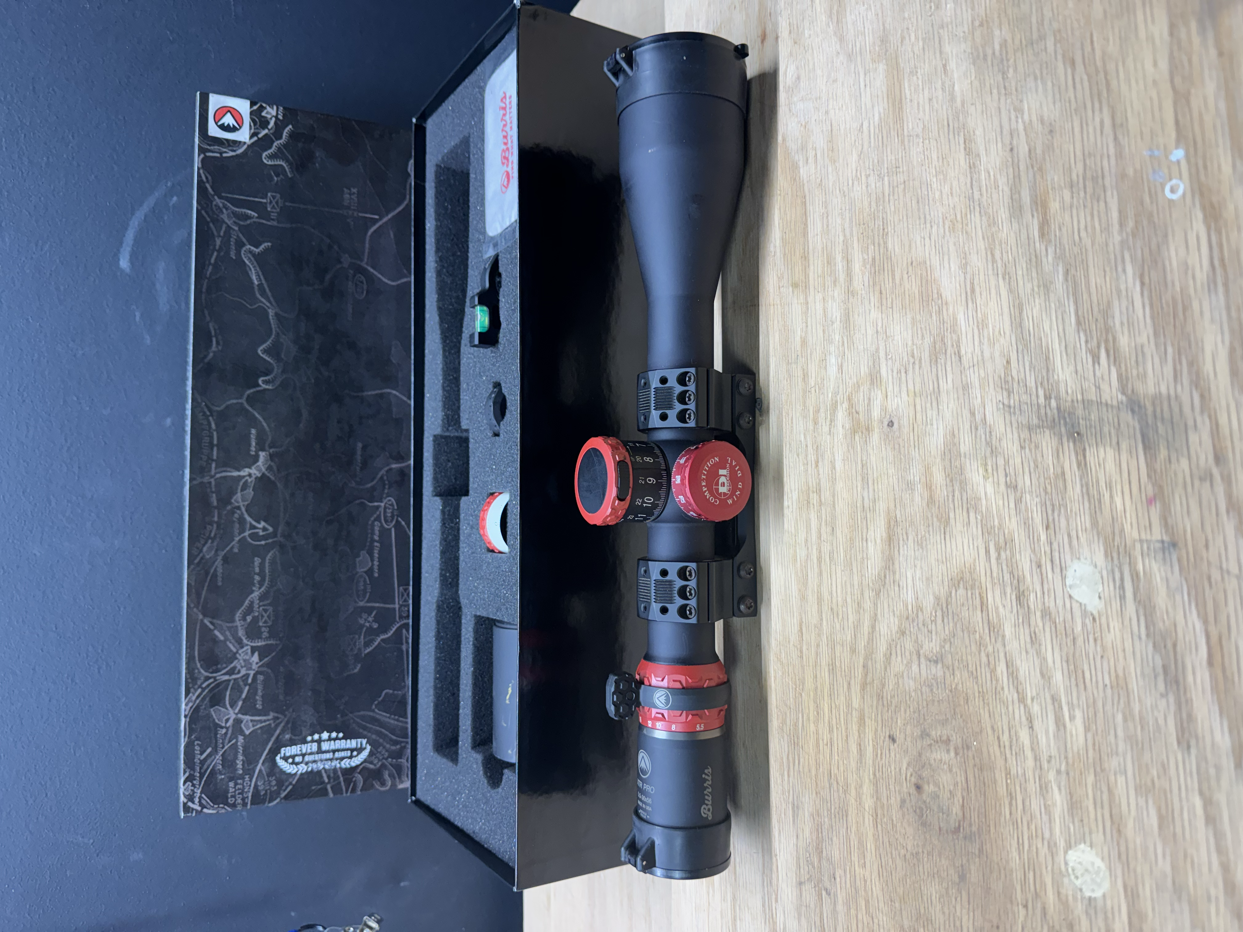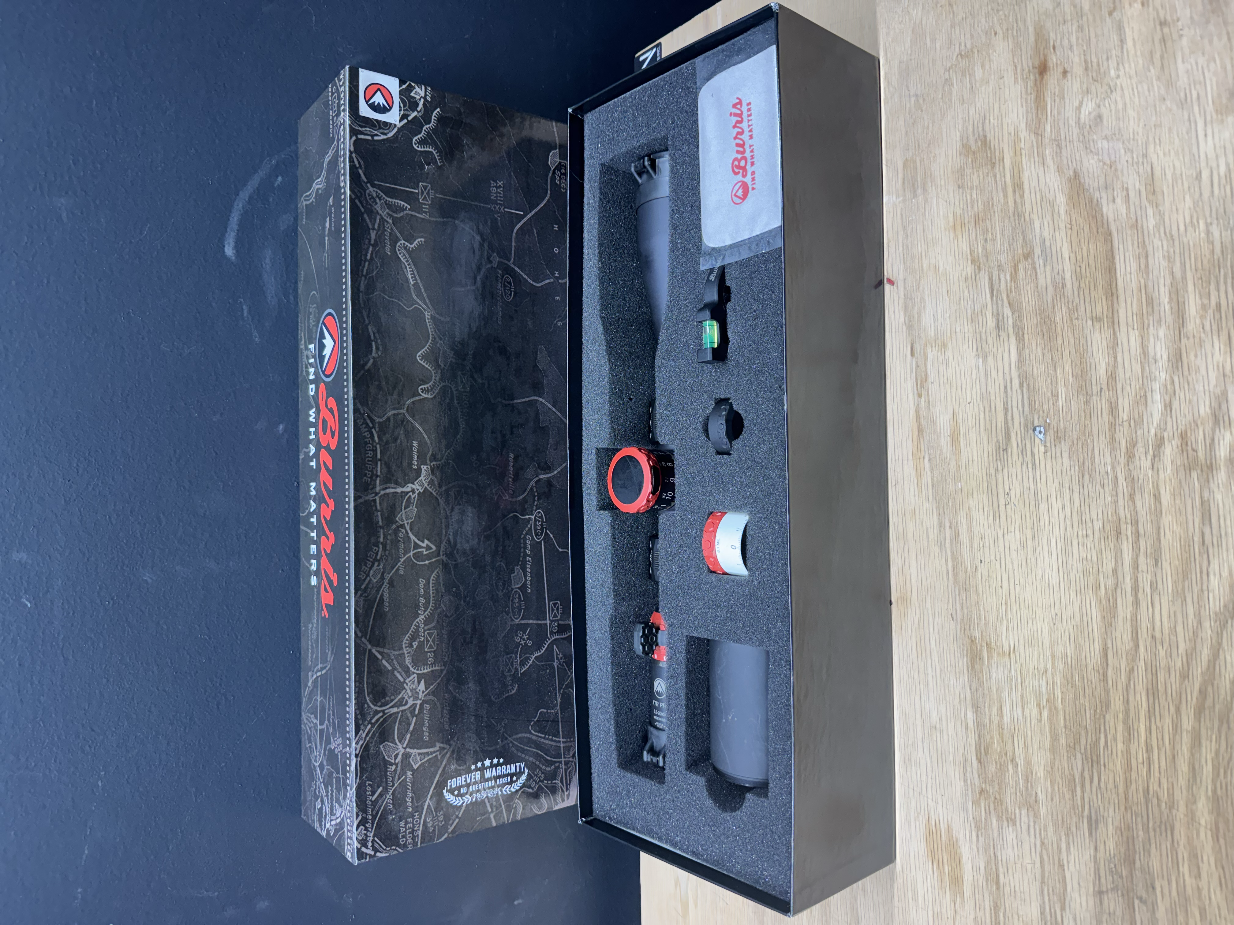 Burris XTR PRO 5.5-30x56 SCR2 reticle. The scope is used and does have some marks on the bell but works flawlessly. The sunshade is does have some scratches from props.