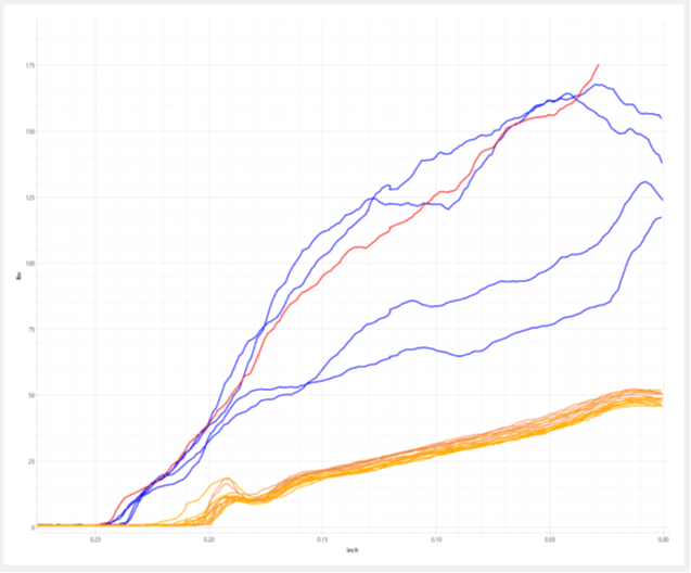 For people wondering about the efficacy of using a mandrel - and I'm adding in neck lube along with it - please look at this overlay of seating forces for two different groups of bullets.