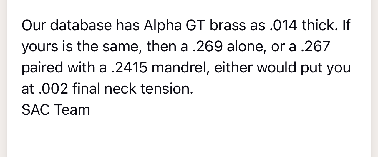 I switched to a regular Hornady/GAP die that is supposedly honed to .266” (but actually sizes a smidge smaller than that in practice) and immediately got more feel/engagement and it brought my stuff up a notch for sure.