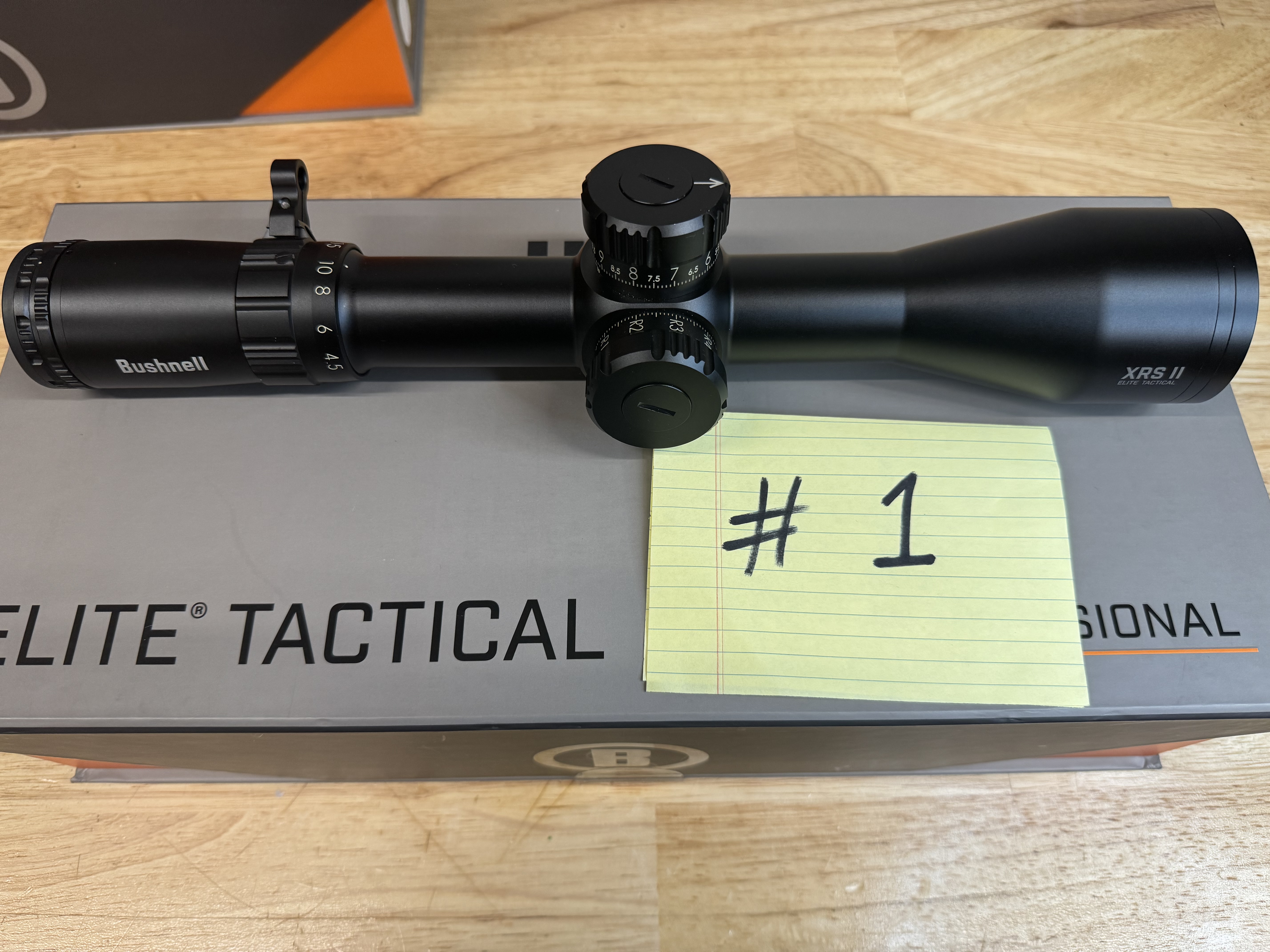 #1- XRSII 4.5-30x50 with Tremor 3 reticle. One tiny spot on front glass which is not noticeable in scope, otherwise like new. I tried to capture a photo of it. $1000