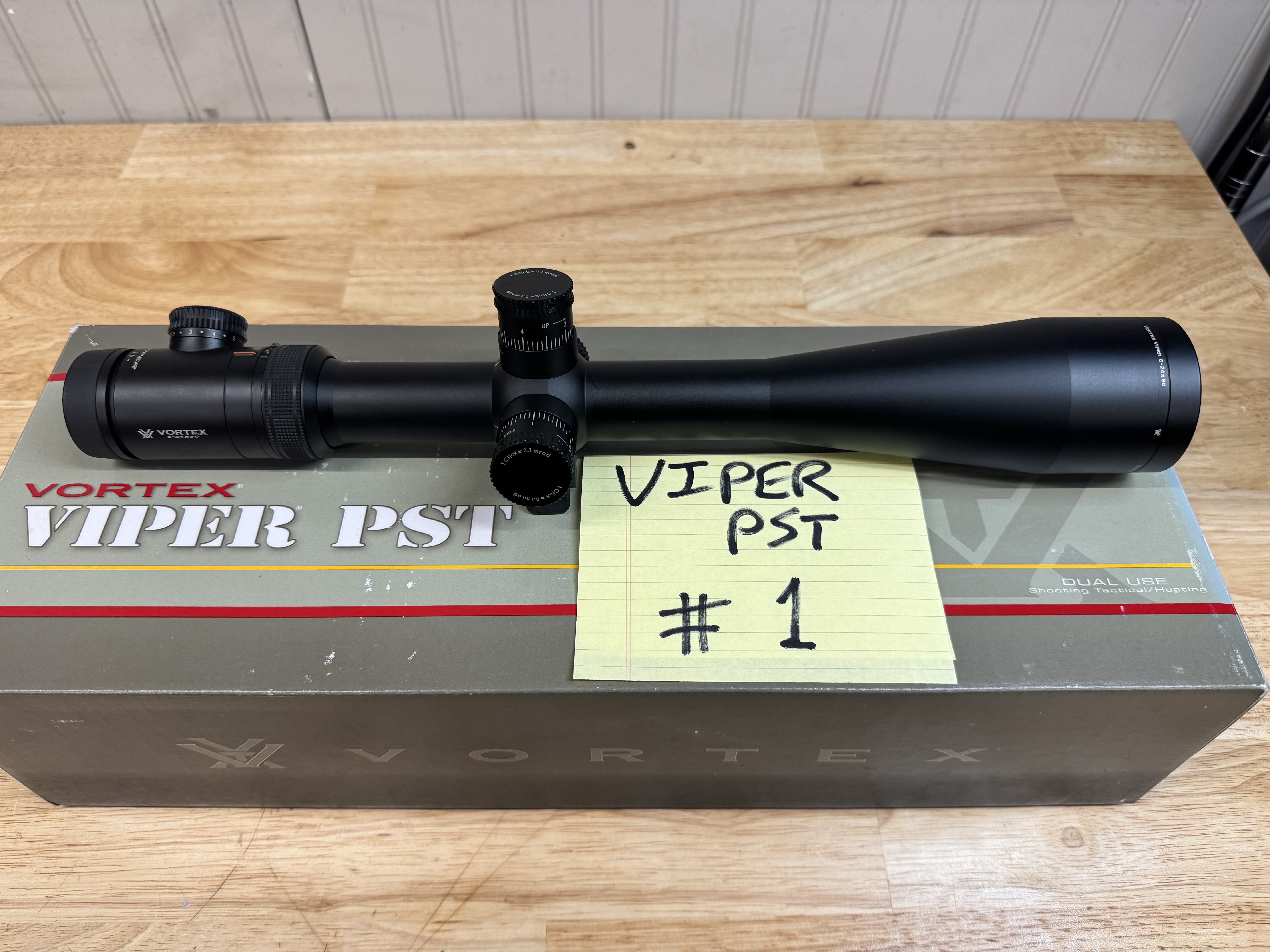 #1- Viper PST 6-24x50 with EBR-1 Mrad illuminated. Great shape, light handling marks. $375