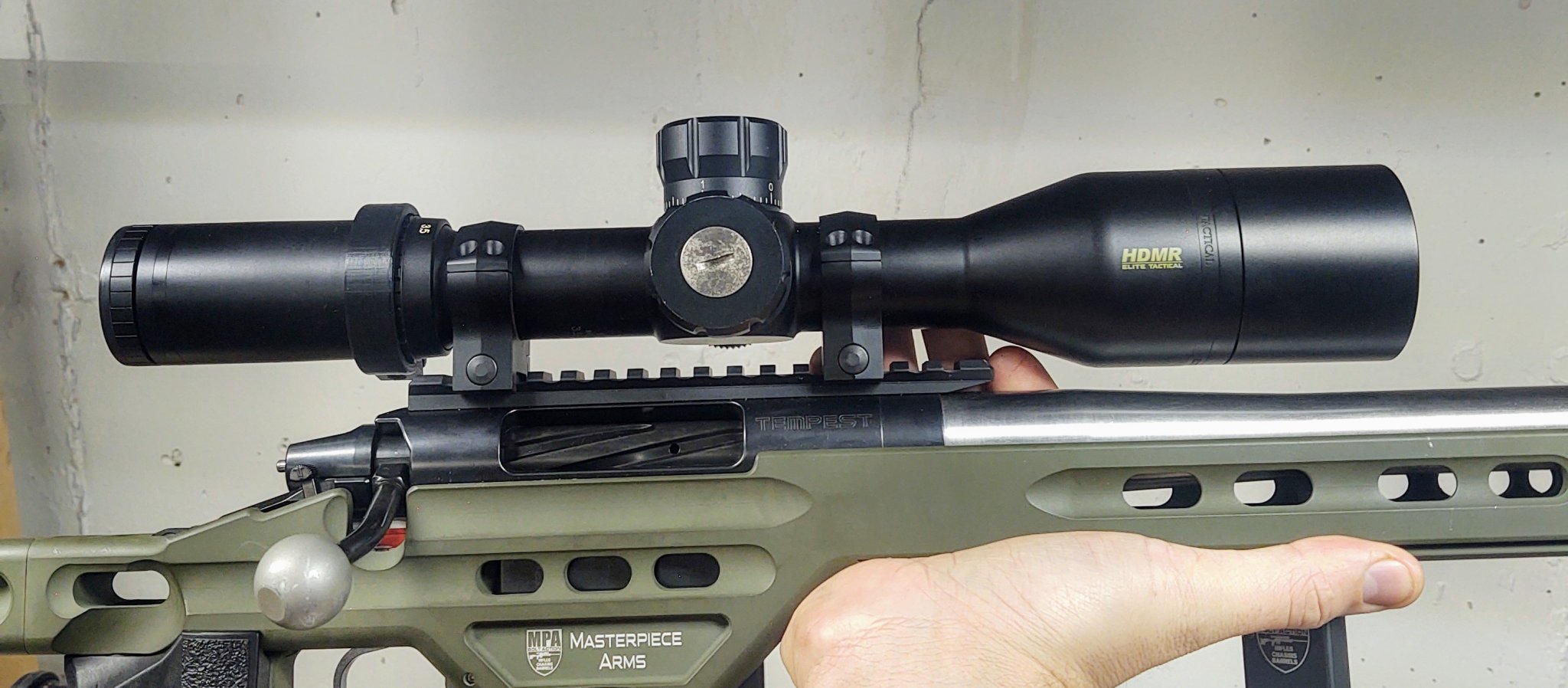 Gen 1 HDMR with Horus H-59 reticle, sunshade included. Don't have the original box, but will include the pictured 3D printed throw lever.