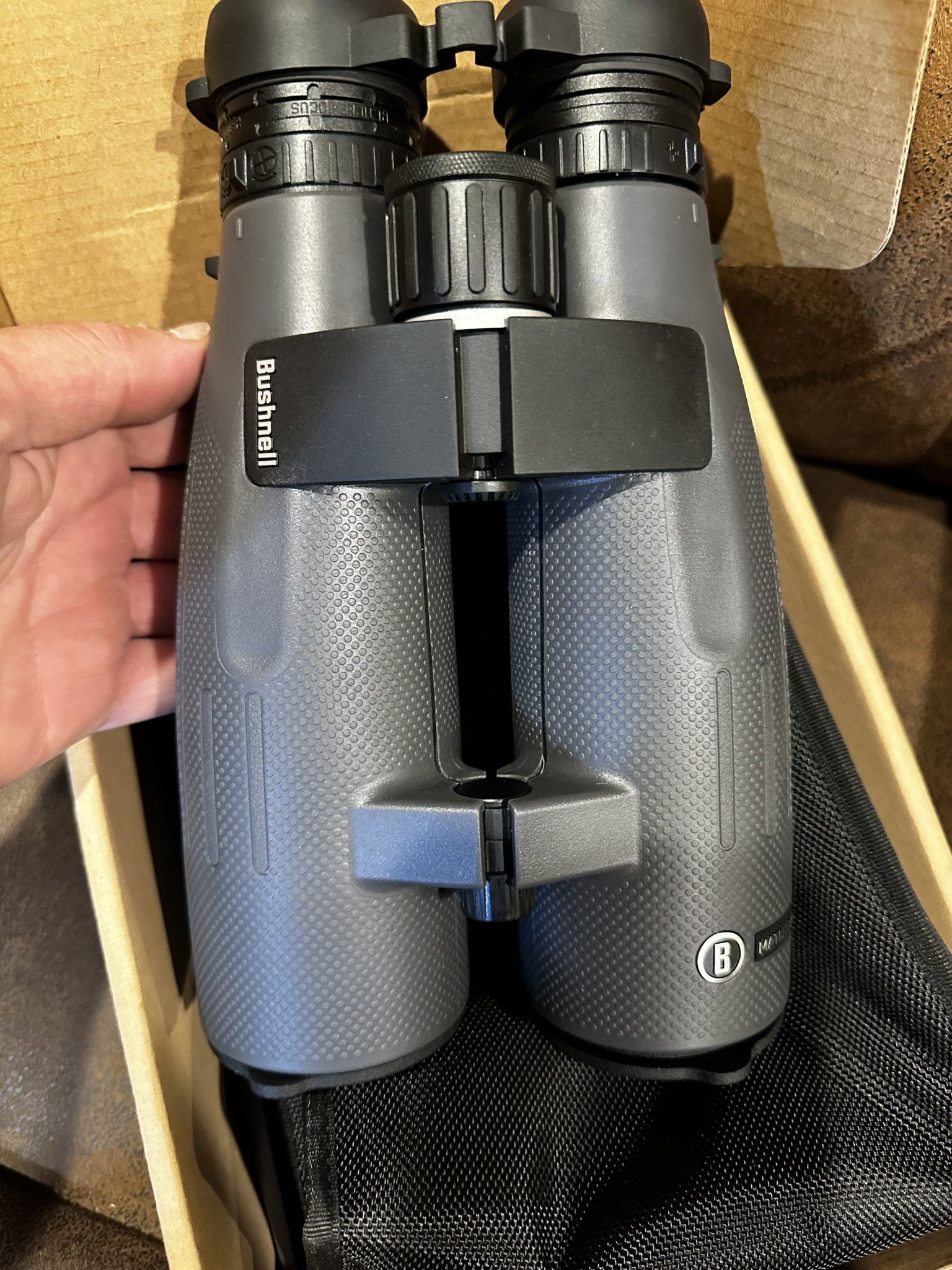 Lucky enough to get a set of these Bushnell 15x56 binos with reticle. New for 2023 and releasing soon. This bino is what people have been asking for. Reticle and 15x. The reticle has a leveling knob so no matter how you have the binos mounted and oriented to your eyes, you can make the reticle level for measurements.