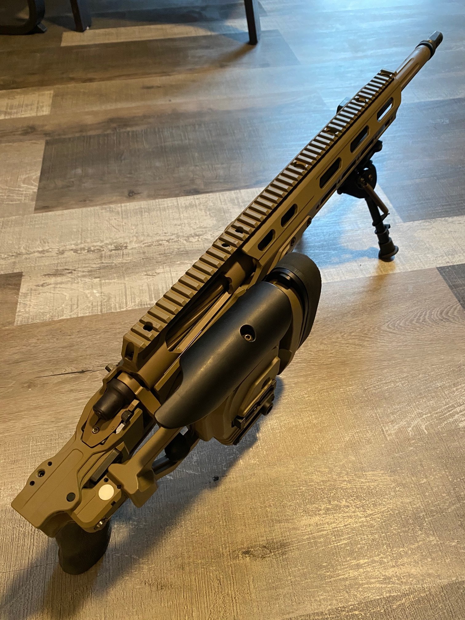 The rifle is in like new condition and has been extremely well cared for. Less than 100 rds through it, all low speed hand loads. The Rifle was built by LRI and has some very nice fluting on the barrel.