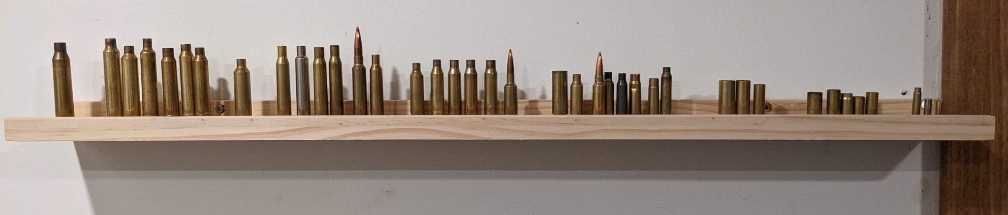 I have about 60 different cartridges in many different calibers, antique to modern, that I'd like to organize into "something that looks nice hanging on the wall". I have old .32 rimfire for a derringer and obsolete cartridges like 303 Savage that I'd like to get out of the plastic bags and up on the wall.