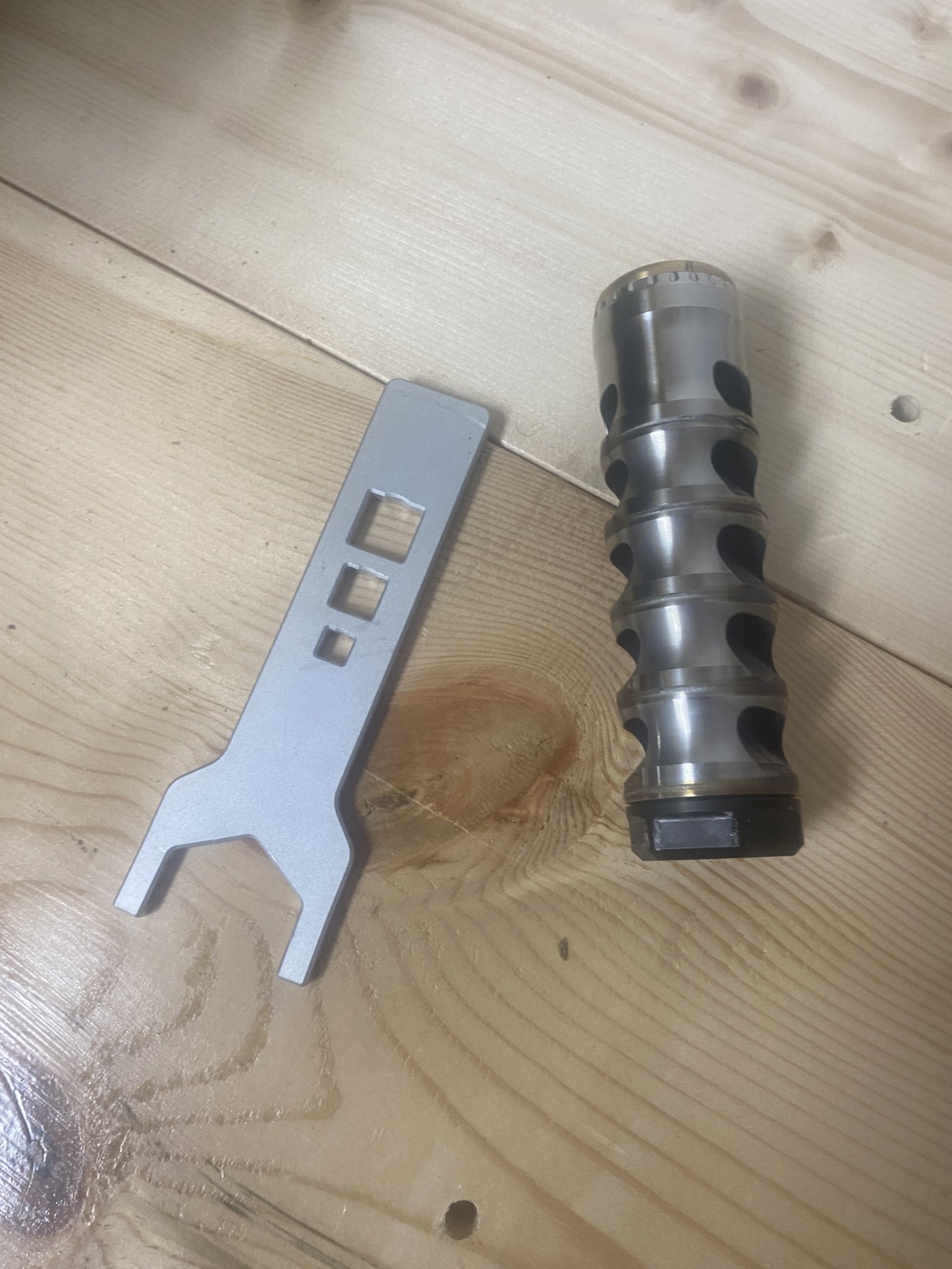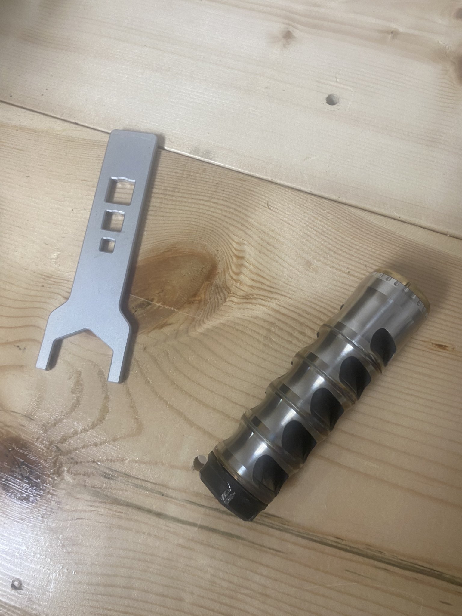 Has had approximately 500 rounds through it. By far my favorite brake but switching everything to suppressed. Only wear is on the jam nut from tool marks adjusting the brake down. Includes the tool that is bought separately.