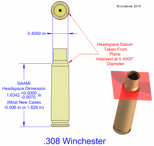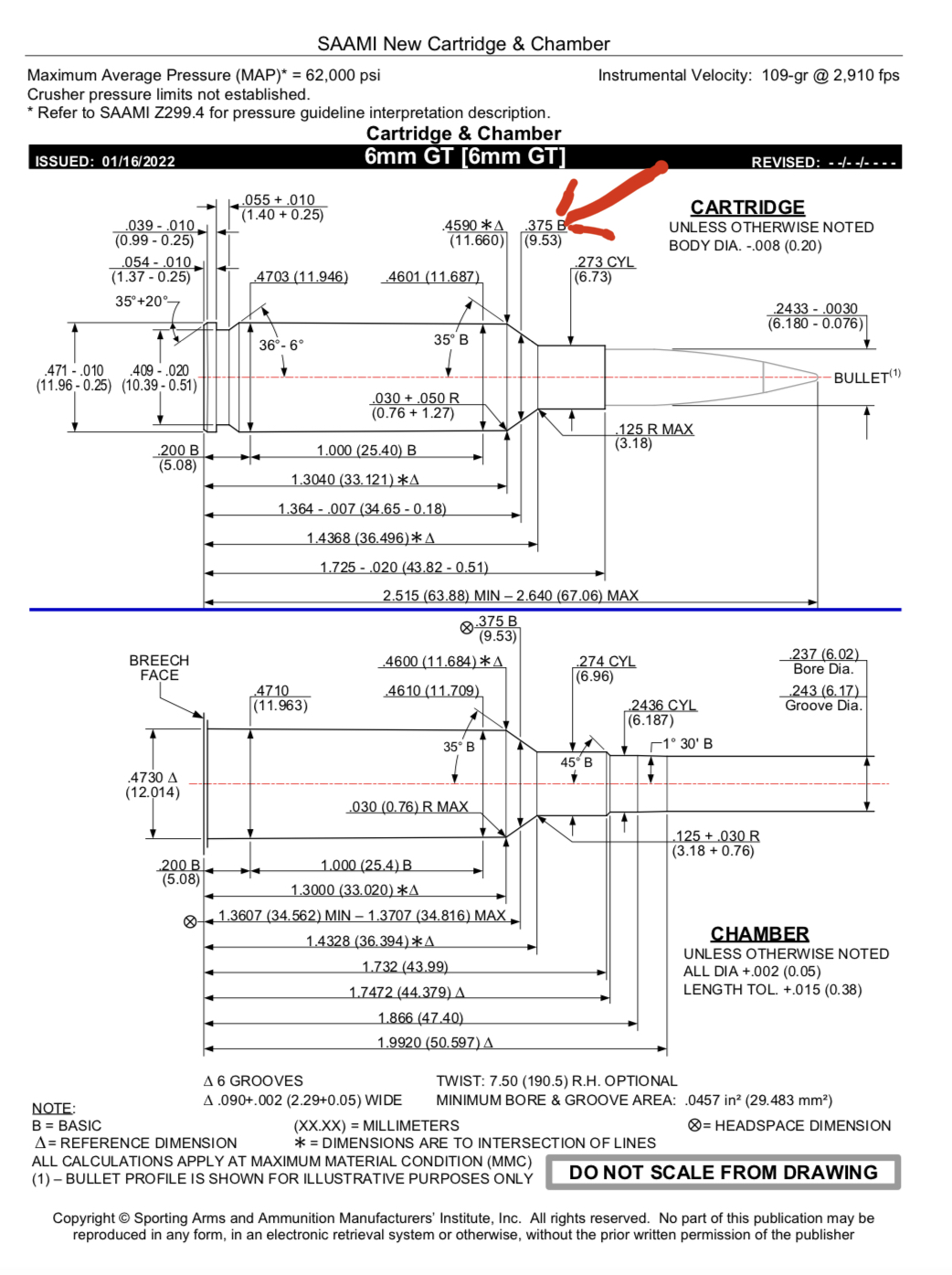 Also, cannot chamber once fired brass from the same chamber. Pics from case gage: