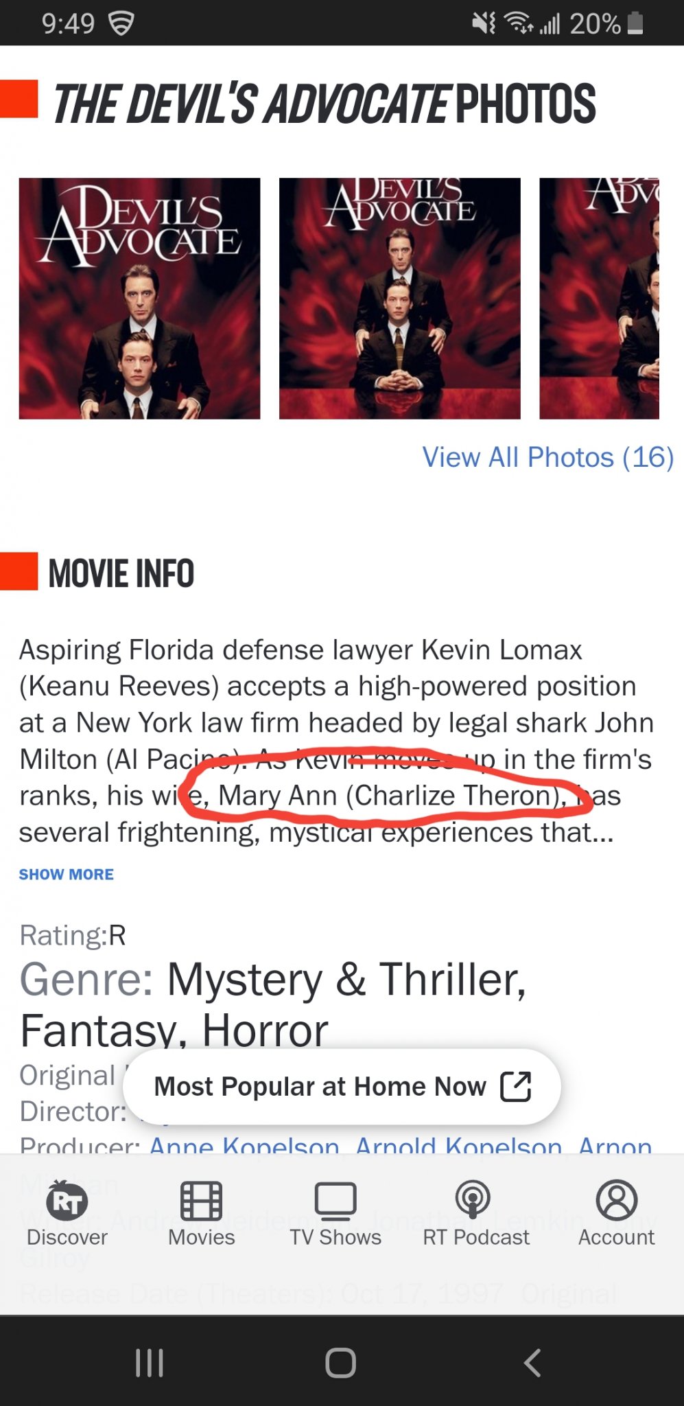 Speaking of The Devils Advocate it’s one of the best movies out there which I think accurately depicts how satan operates. No blood or gore just temptation.