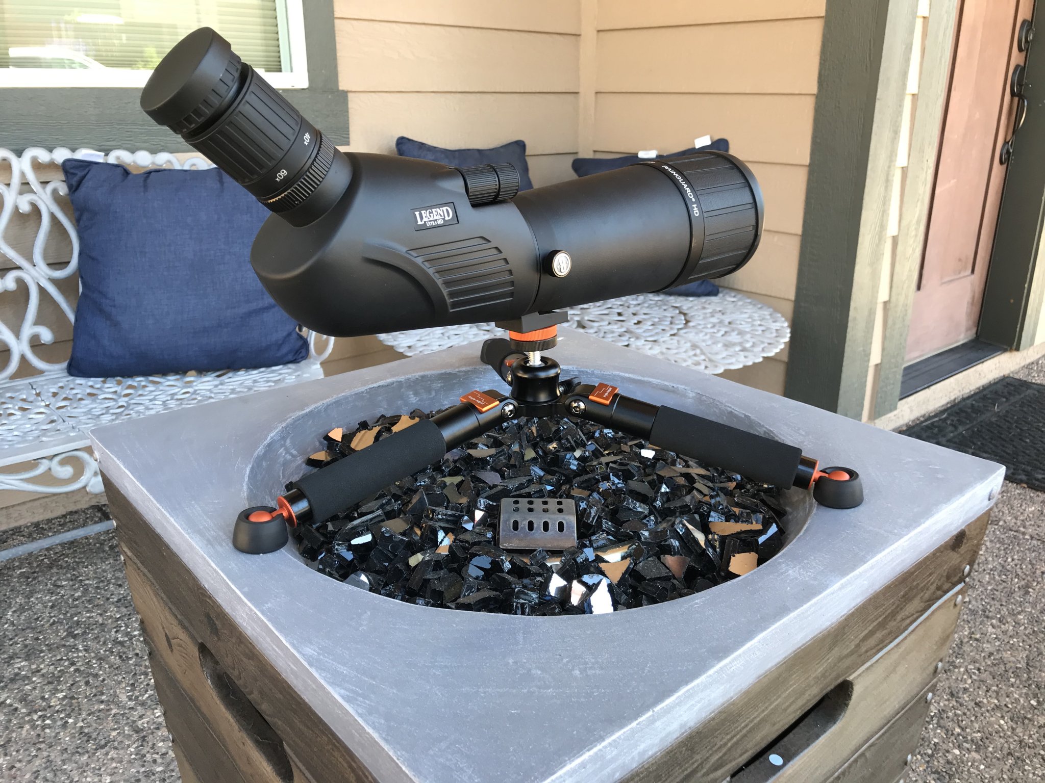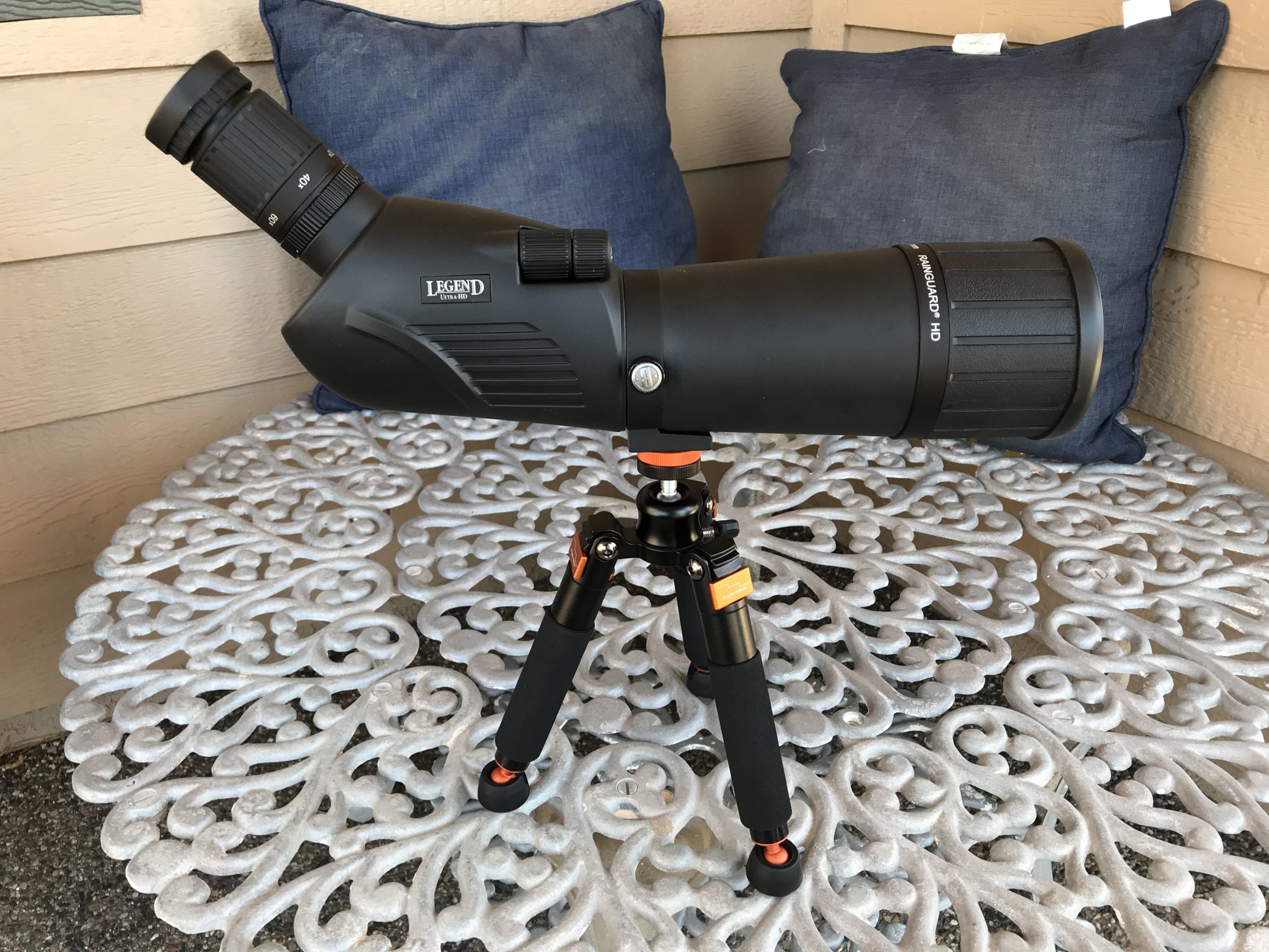 I was looking for a small tripod for my Bushnell Legend Ultra HD 20-60x80mm spotting scope. I have a decent Manfrotto tripod for standing, but I wanted something smaller that could fit in the Monoprice fake Pelican 1510 case with the scope. The scope weighs 4 pounds 11 ounces and is approximately 18.75” long. I looked on some forums, Amazon, etc and it seemed like the Vanguard VS-82 was the only choice. The Amazon reviews suggested it was “adequate” for a spotting scope on a bench. I kept looking and found another option, the Bestshoot Desktop Mini Tripod. I ordered both this and the VS-82 on 7/17 to evaluate. At the time of writing the Bestshoot is $31.49.