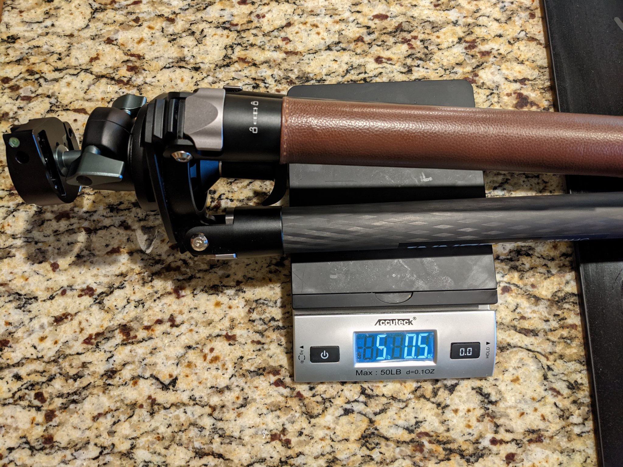 Shockingly it holds my 16 lb Tikka in this cantilever position, after I crank down on the tension lever. For my AR it's effortless, light tension and it holds no problem. The tripod seems really sturdy, but I haven't put it through much so far. I do need to get a flat plate to replace the bowl adapter as for some reason that wasn't included, and figure out how to tap that and the ball head to prevent rotation, but I don't think that should be too hard.