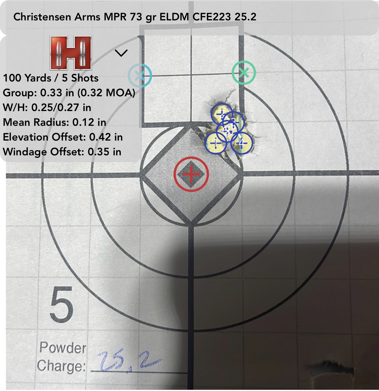 I bought an MPR in .308 Win last year with similar results using factory and hand loads. There is new mgmt at CA and seem like they are going to do something about it now. Just received my RA and going back to them to test and/or replace the CF barrel. Hopefully their CS department will do same for you.I picked up an MPR in 223 Remington, it has the steel barrel. After a quick clean I put on SilencerCo ASR mount and the Omega 300 and took it out to the farm for a few shots to get some brass to start a load workup.