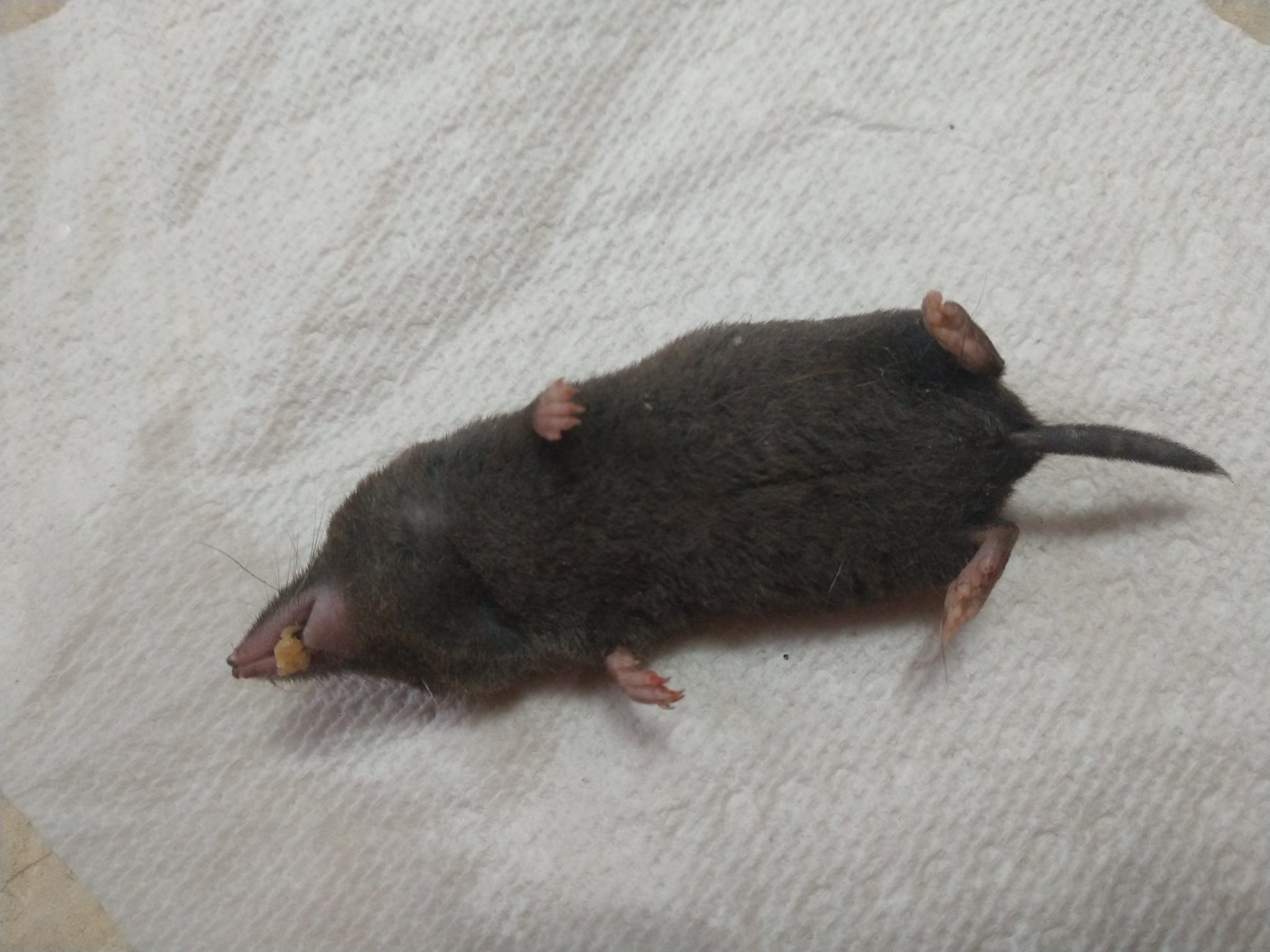 Edit to correct. Not a vole, critter is a shrew, which...makes this no less strange.