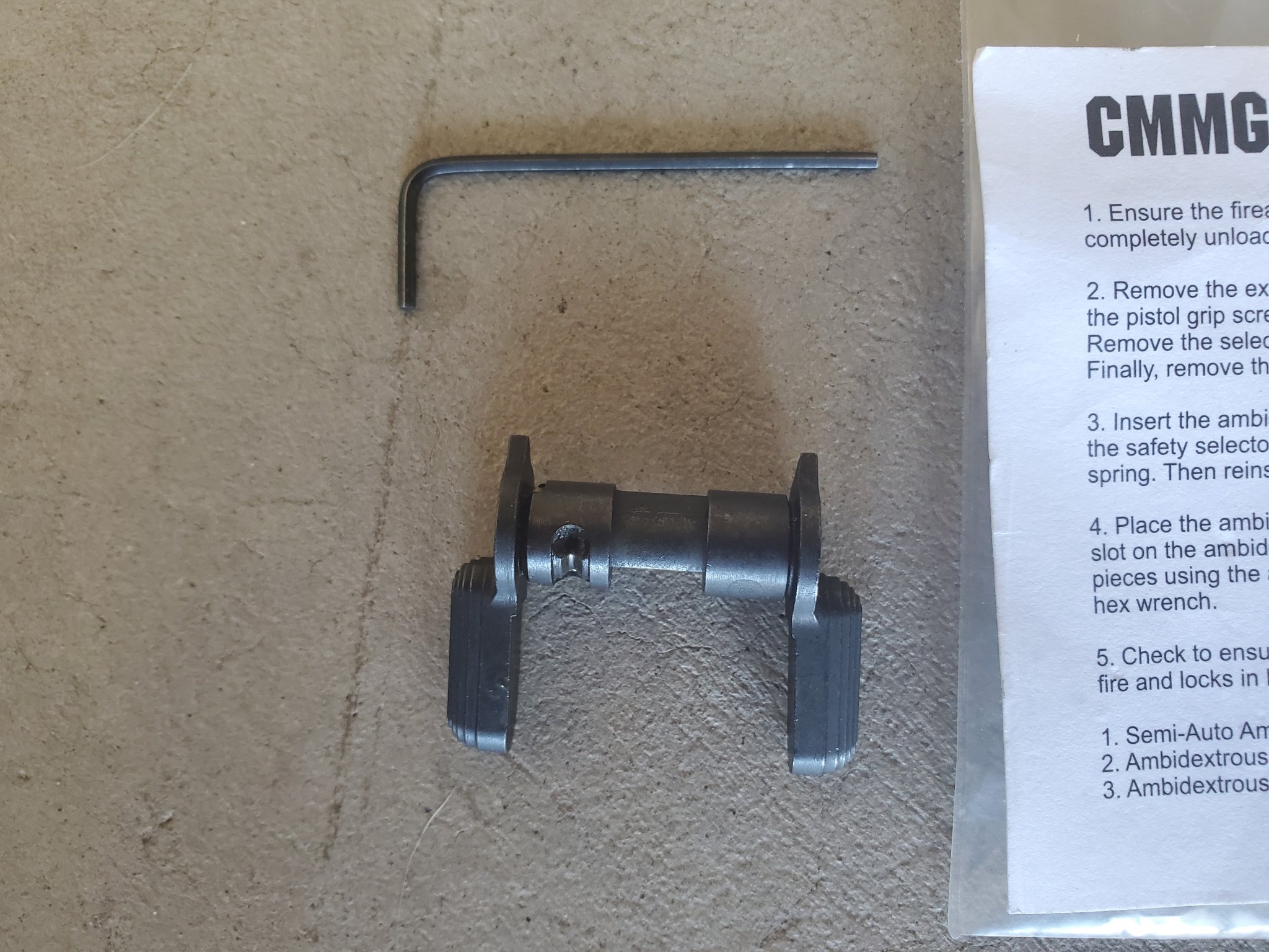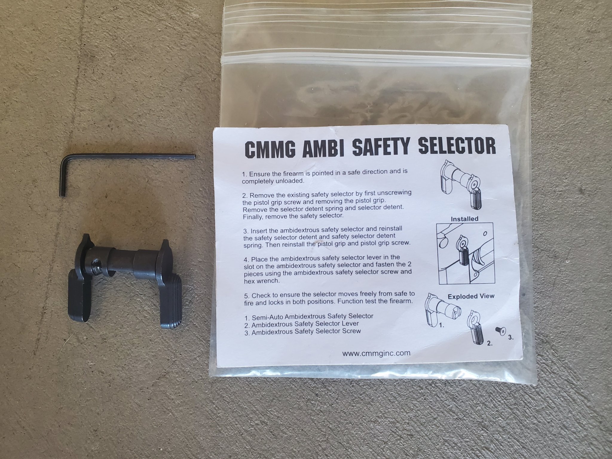 CMMG Ambi Safety Selector for AR-15. Lightly used in original packaging. Retails for $29.95. Yours for $15.00 shipped to the lower 48 U.S. only. Sorry, no trades. Payment with Zelle or Venmo. No Paypal.