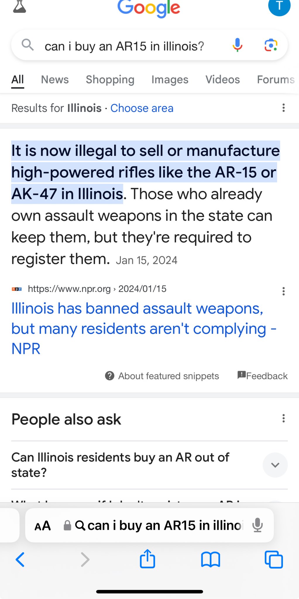 IL has an “assault weapon” ban in place and the court battles are ongoing. And yes, I am new to the AR platform.