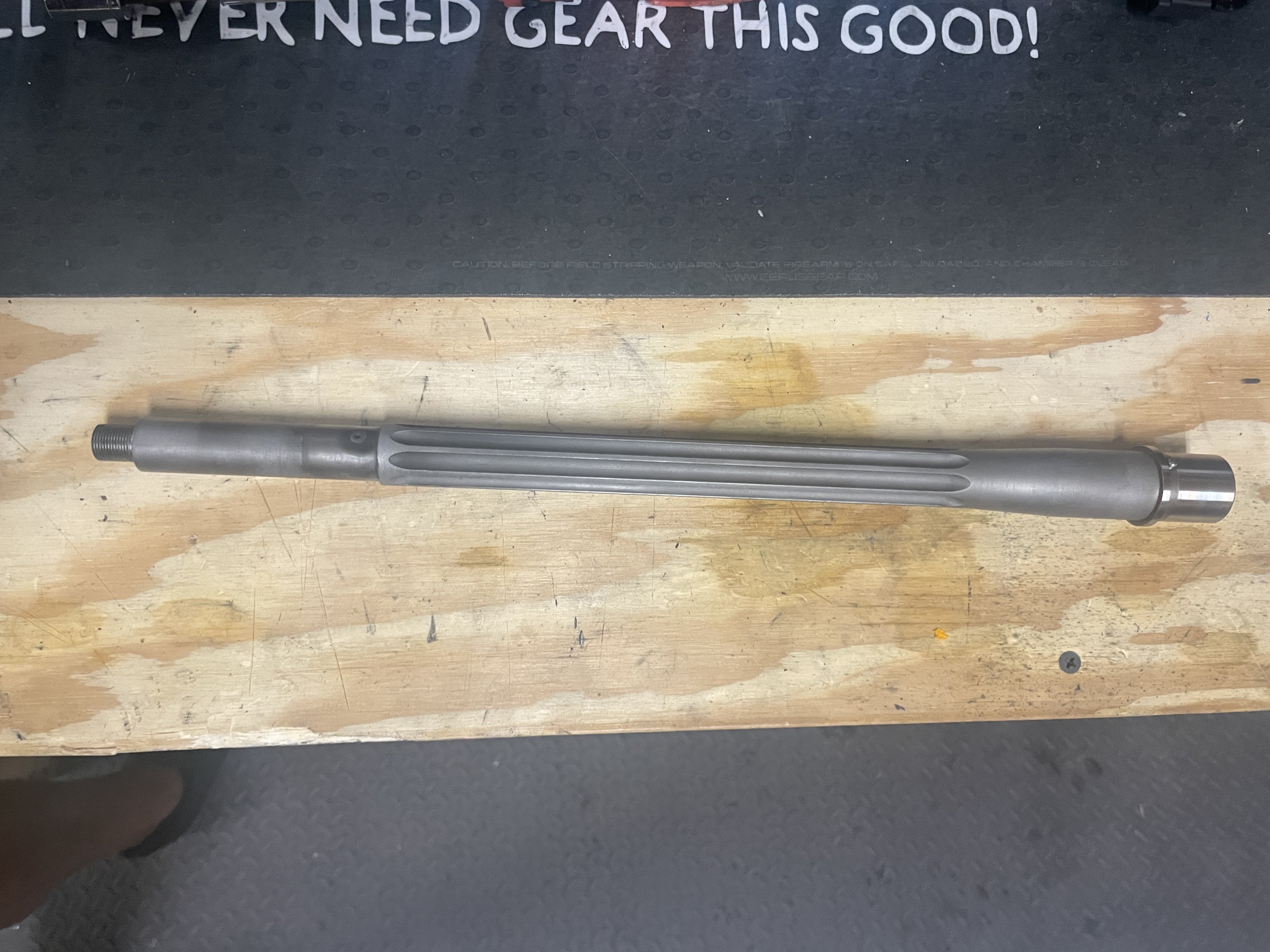 Craddock Precision fluted 1:7tw 15.1 recce barrel chambered in .223 Wylde. It is bead blasted, has 1/2-28 thread with 11 deg crown, .750 gas block, intermediate length.