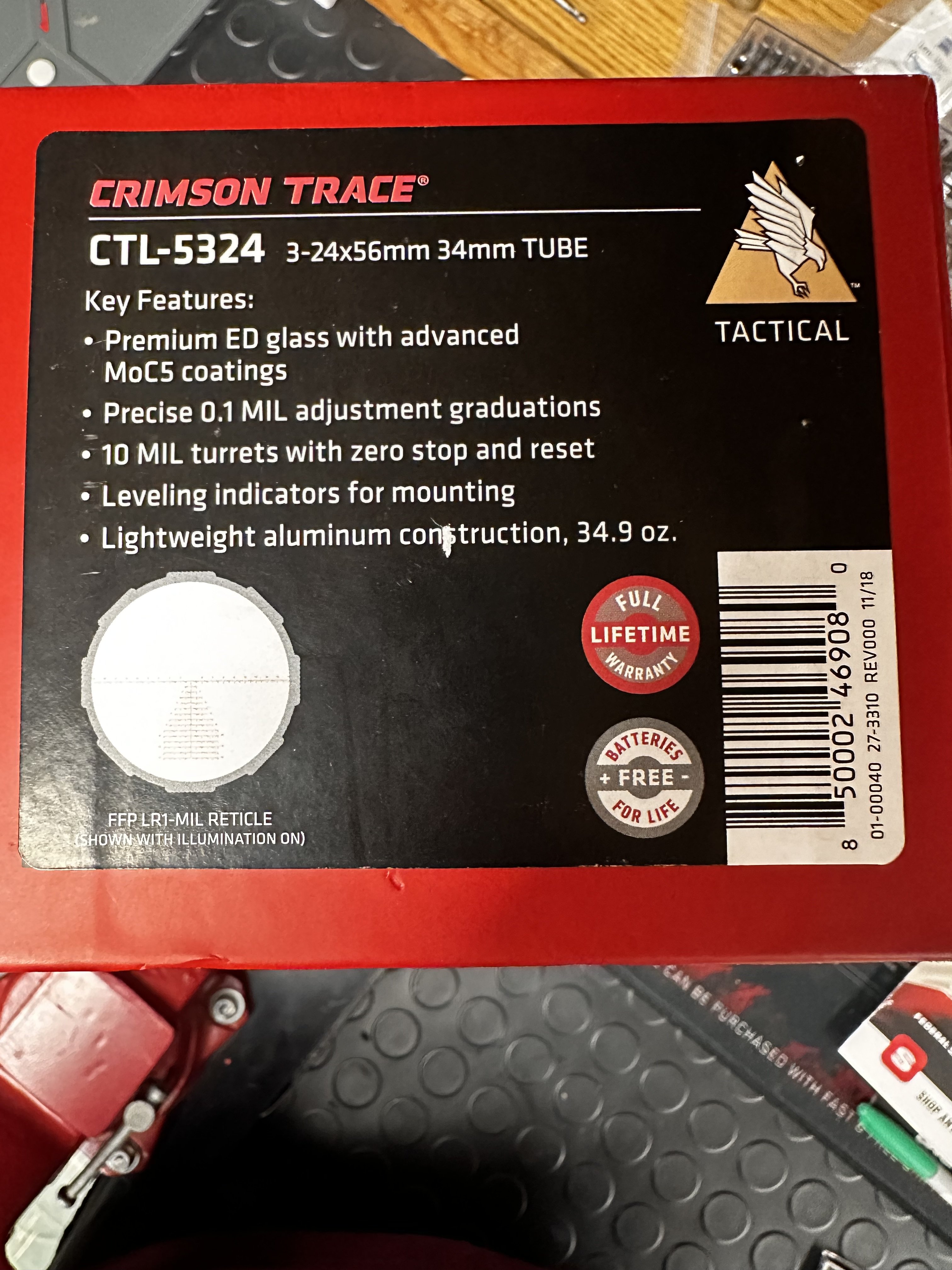 Crimson trace 3-24x56 34mm tube, illuminated FFP LR1-mil reticle. In good shape. 900+shipping