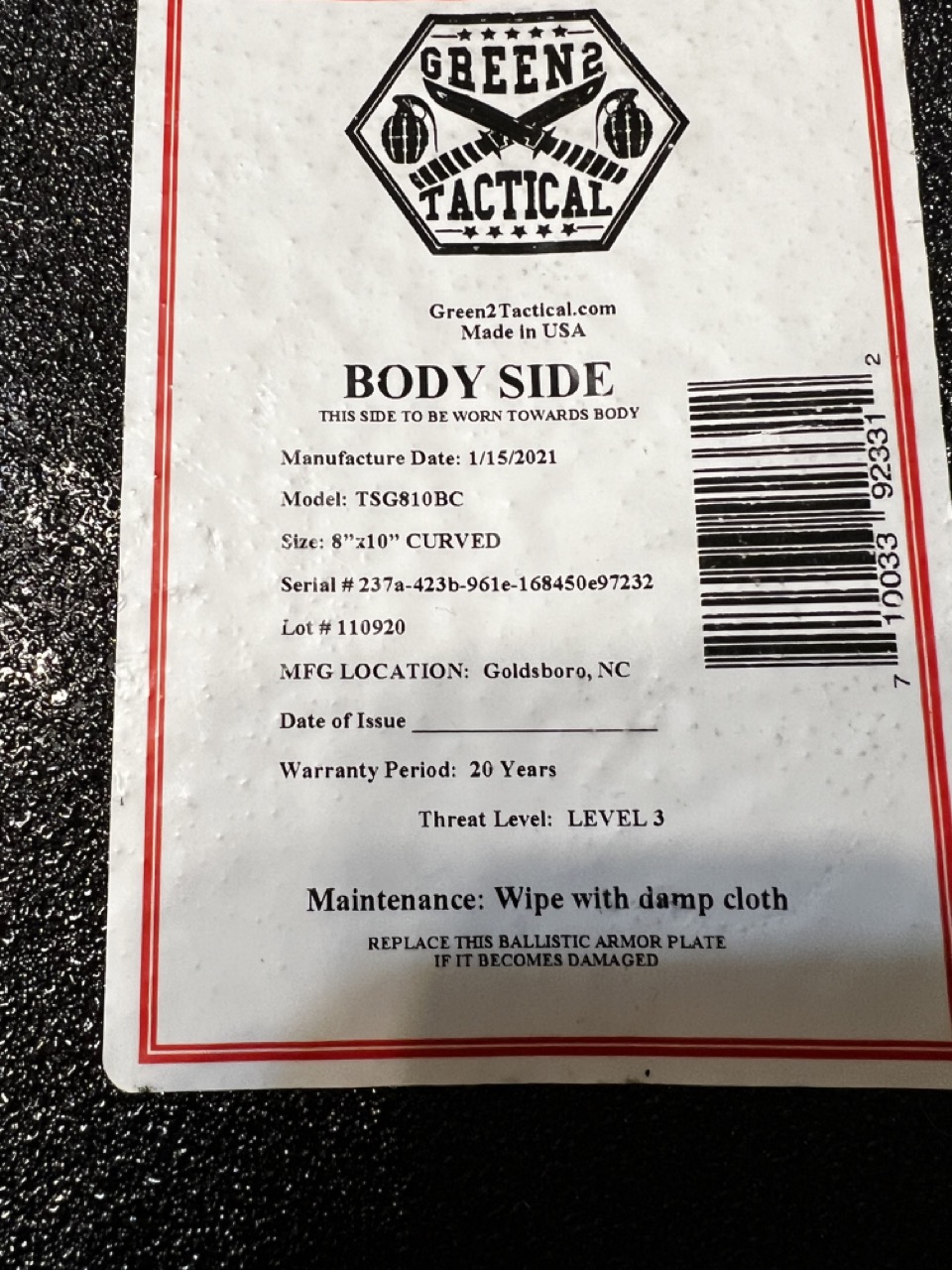 Prices: Crye JPC with the two steel plates (Level 3) and the dangler: $125 shipped