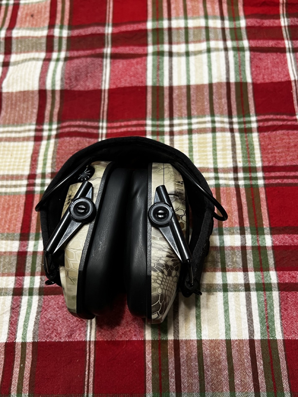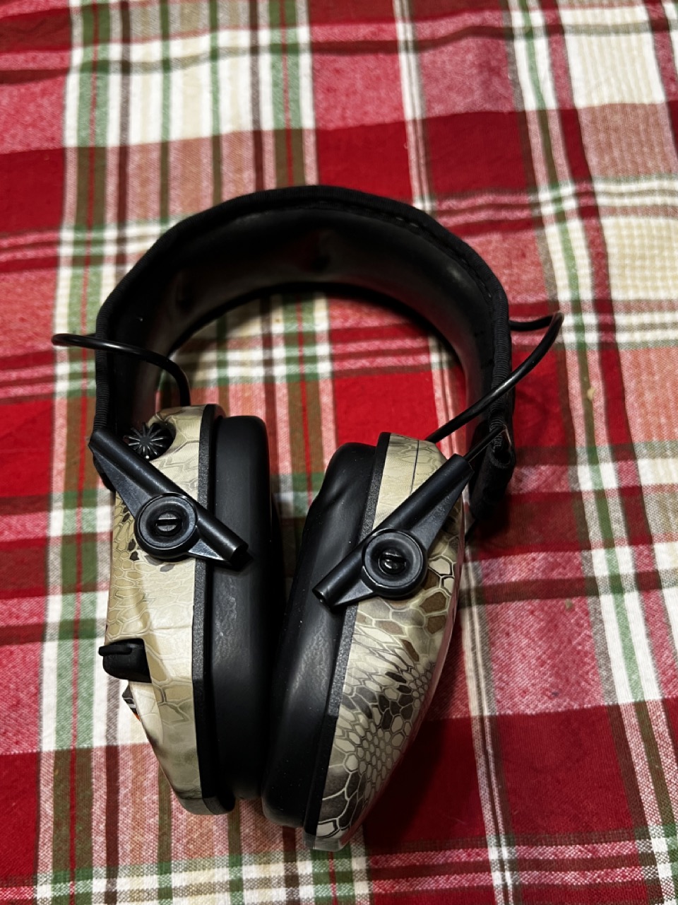 The Walker Razor's are in excellent condition. I've only worn them to one range day, so they're practically new. They will need a new battery, but I'm sure I can send one with it, so you don't have to go buy any batteries. This set is in the Kryptek Camo and the slim version, meaning you could theoretically wear them under a helmet. I've had decent success with shouldering firearms with these on, so hopefully they won't be an issue for you.