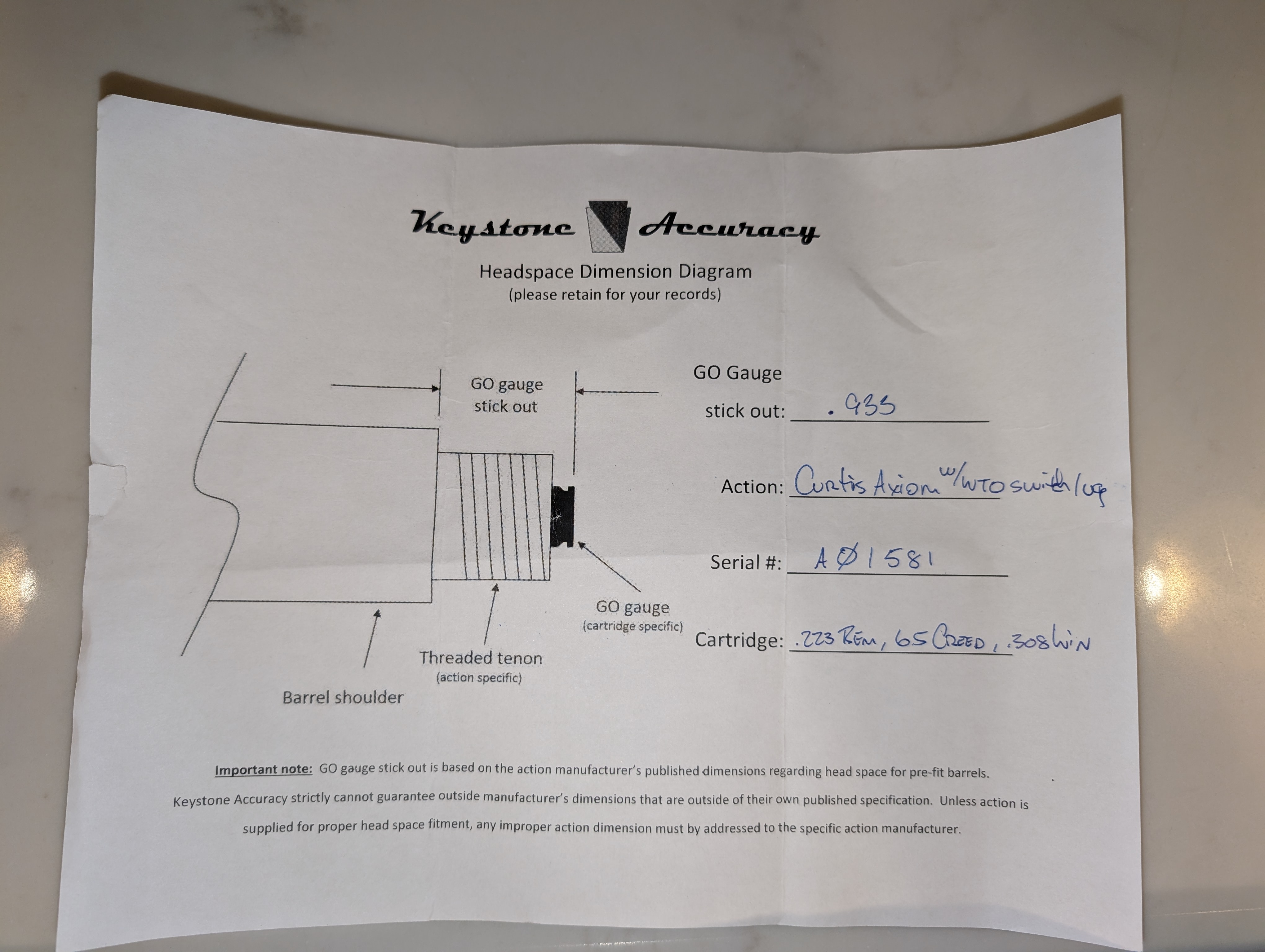Curtis Customs Axiom action with West Texas Ordinance recoil lug.