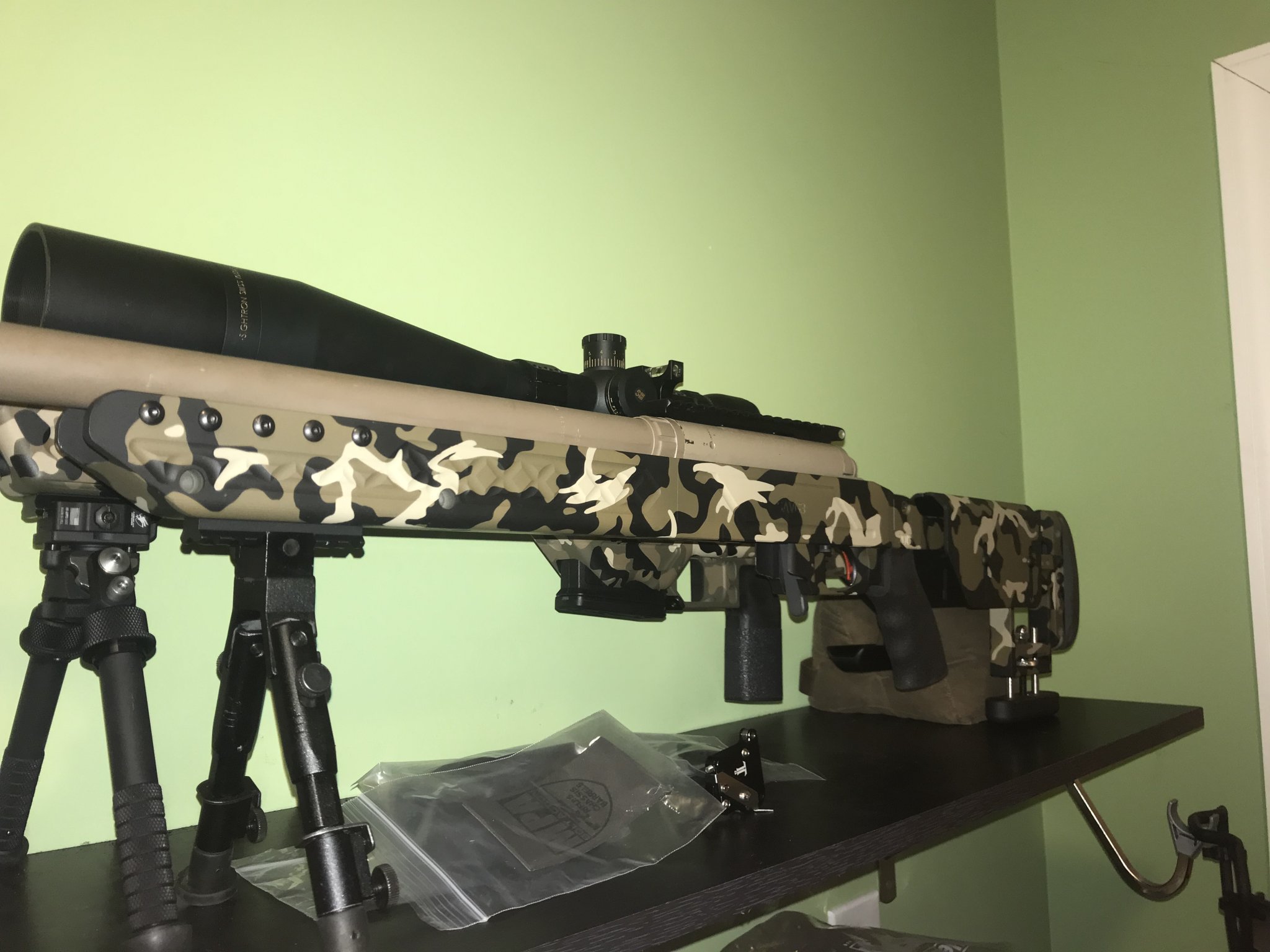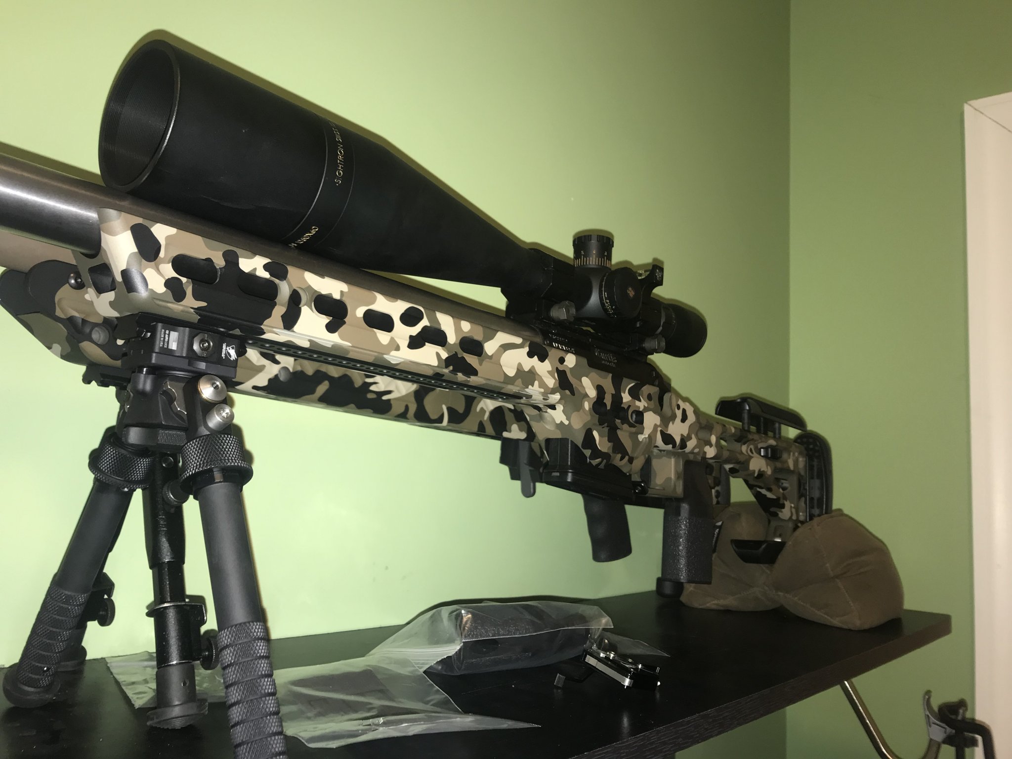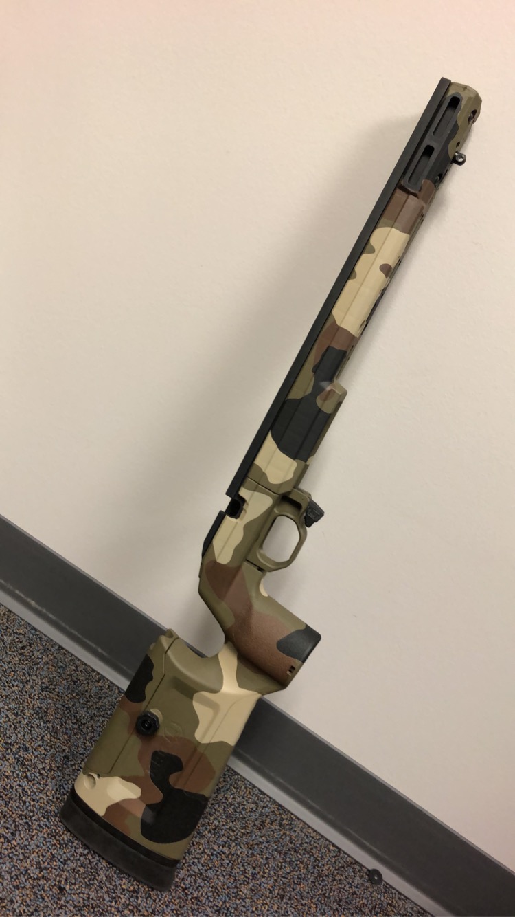 Absolutely. Here’s 2 he did for me in the group buy. I should’ve sent everything I had. That dude is crazy talented. The MPA chassis he did in Weidman Flecktarn for me. My crappy photography skills don’t do it justice. The other pic is my first “precision rifle” an old savage model 10 with criterion bull barrel. The action and barrel fde are very different and it’s had a hard life. ? It is what started it all for me so I decided to church the ol gal up a little. He did the McCree precision chassis in the reverse nightstalker pattern and it’s phenomenal! I hate to have multiple chassis’ in that pattern but my Jae chassis will be going for the same pattern as soon as I can free it up. I love the reverse nightstalker. Thanks again to fiveshotdot and shortbus. ?