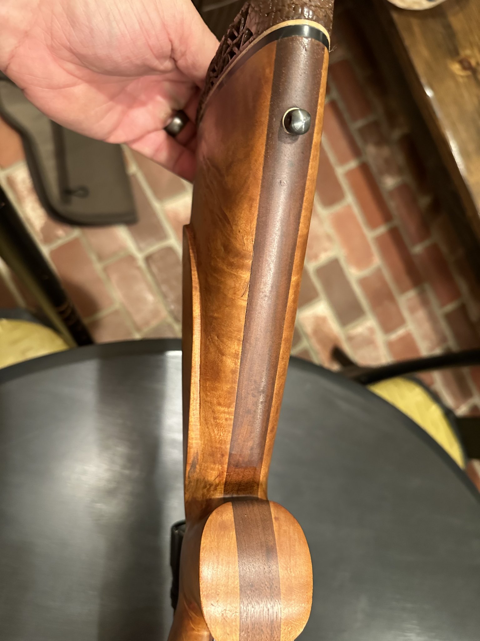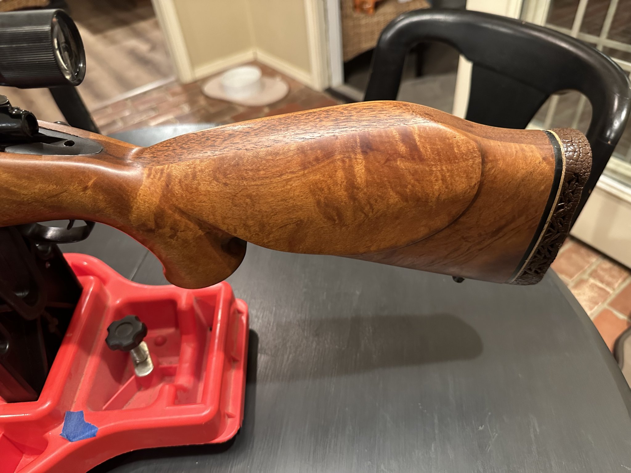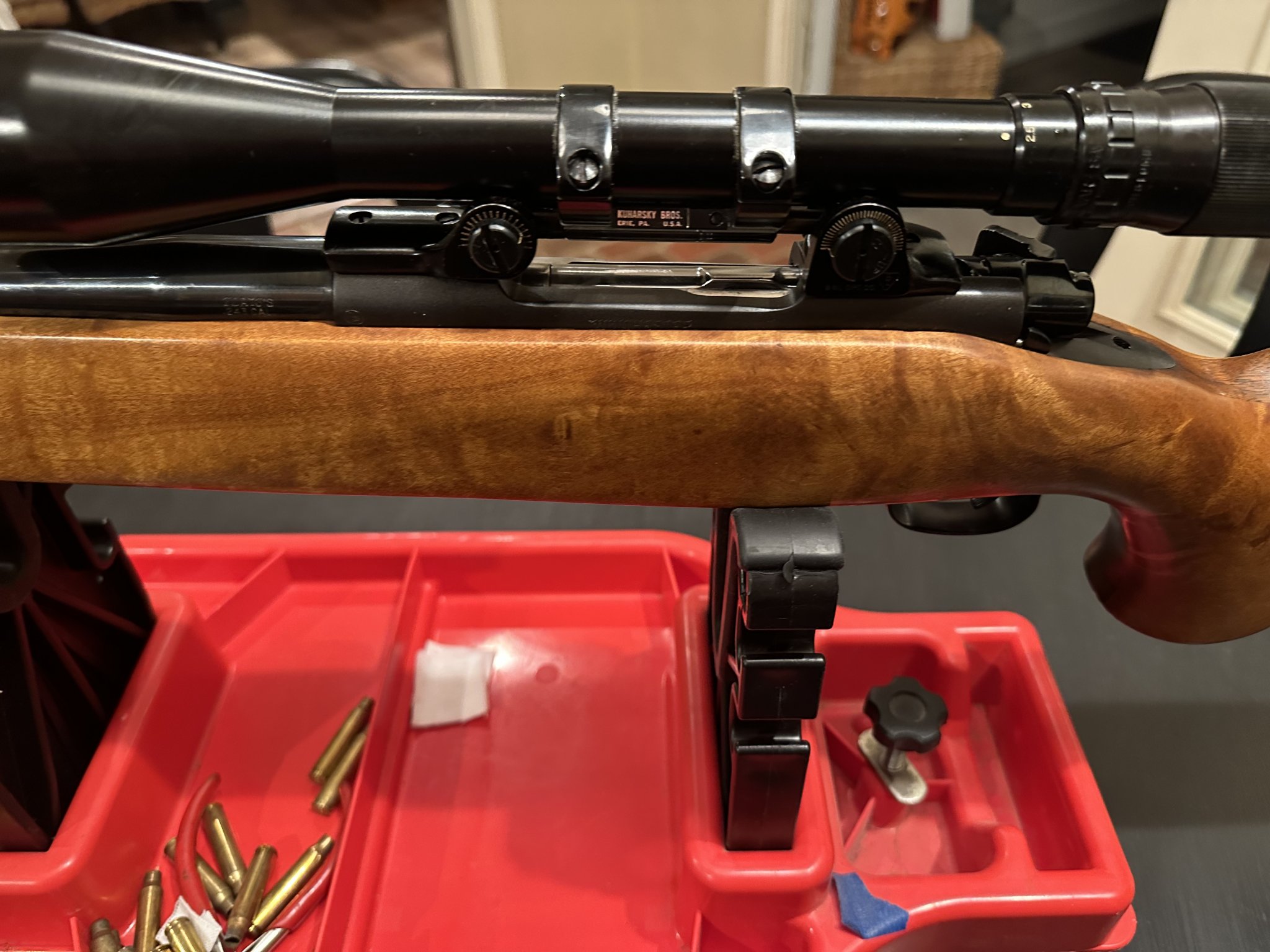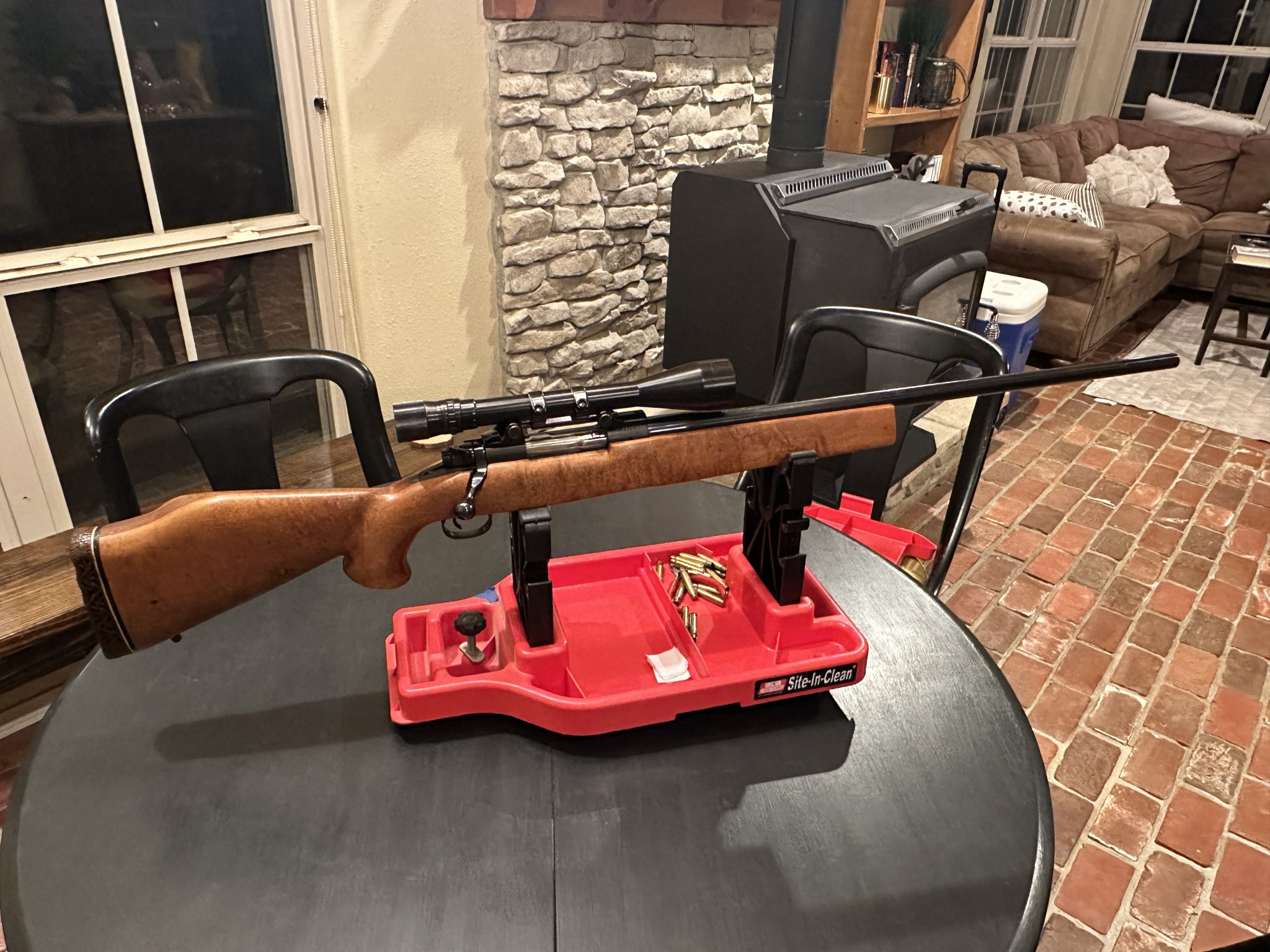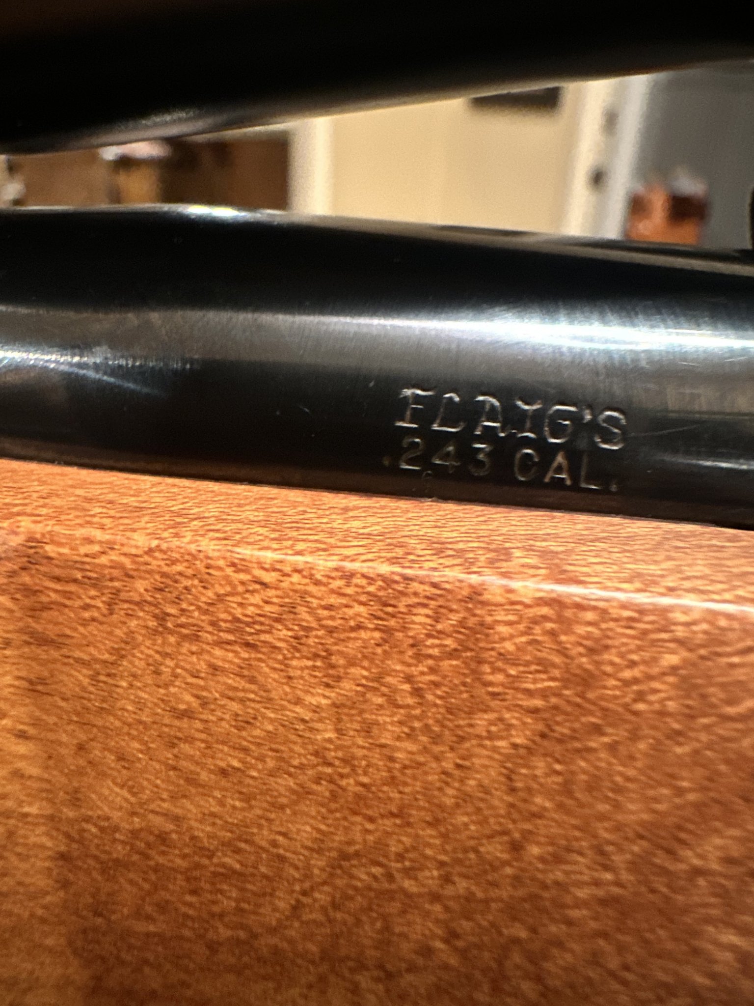 Picked up a beautiful Charley Flaig custom pre 64 (1955 best guess) Model 70 in .243 today. Also has a period correct Bausch and Lomb 2.5-8 optic on it on top of a Kuharsky Bros mount. Windage and elevation adjustable not from the scope but from the mount. Douglas custom barrel. Outside of the recoil pad having hardened, this thing is just beautiful. Gentleman I bought it from told me his grandfather had it custom built at the Flaig shop in Pennsylvania.