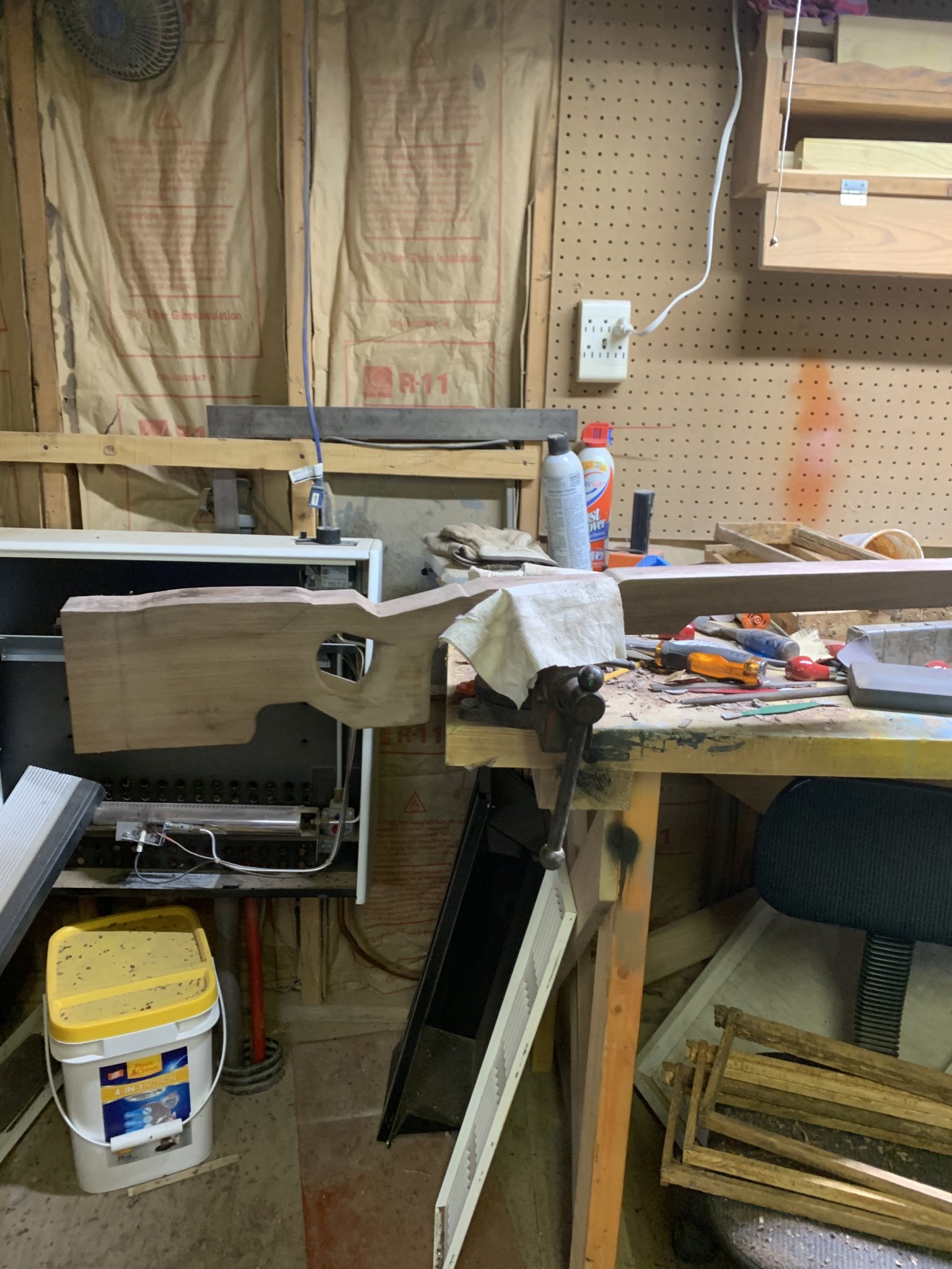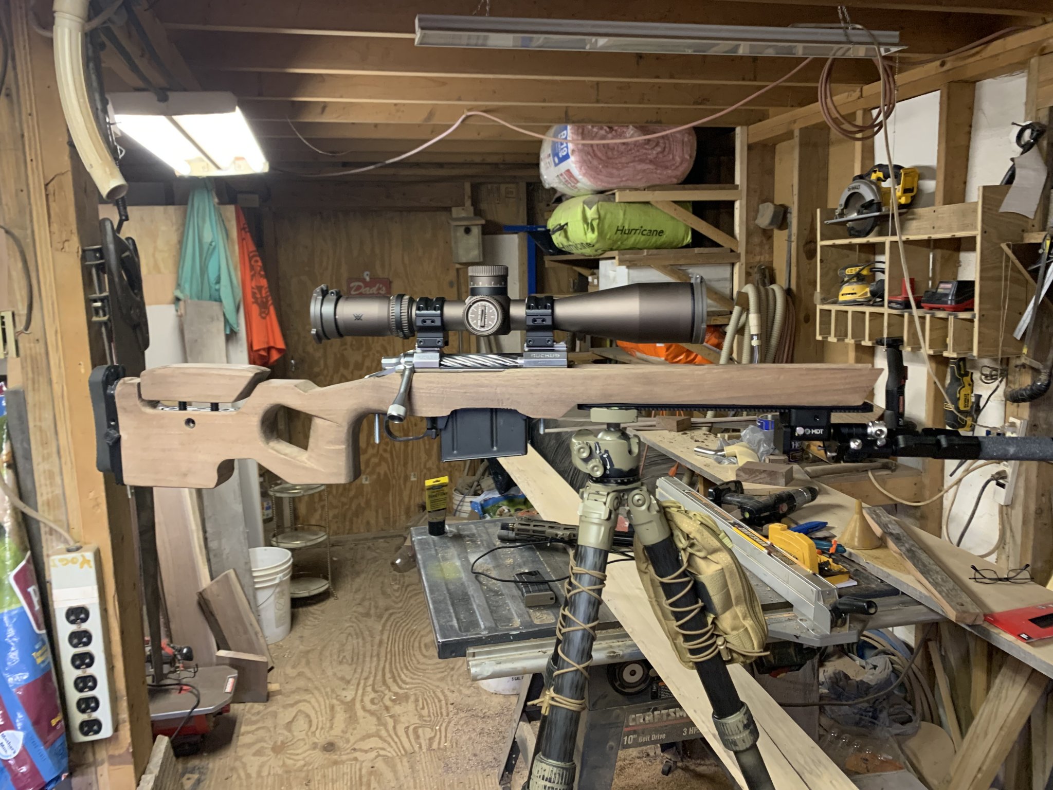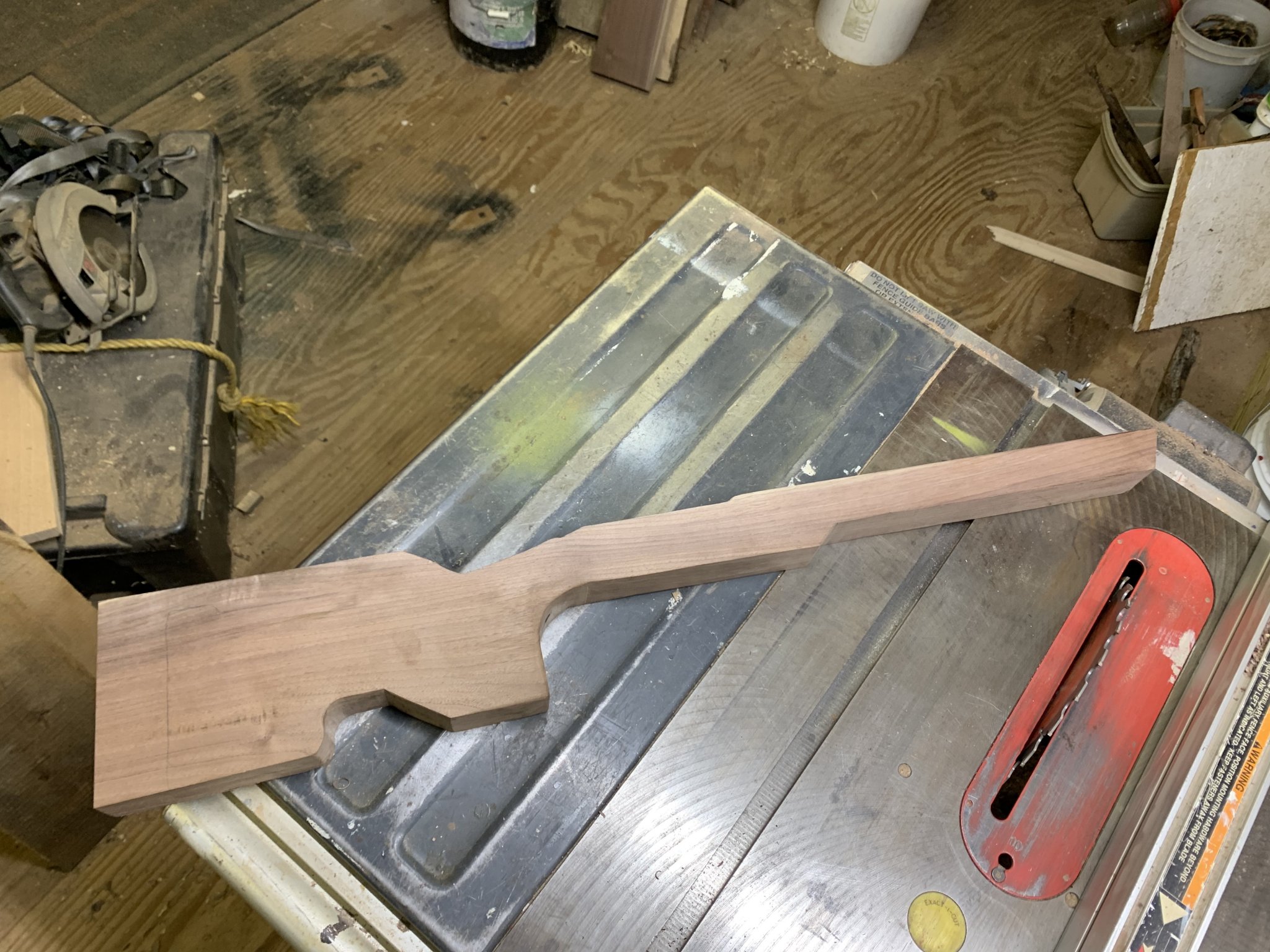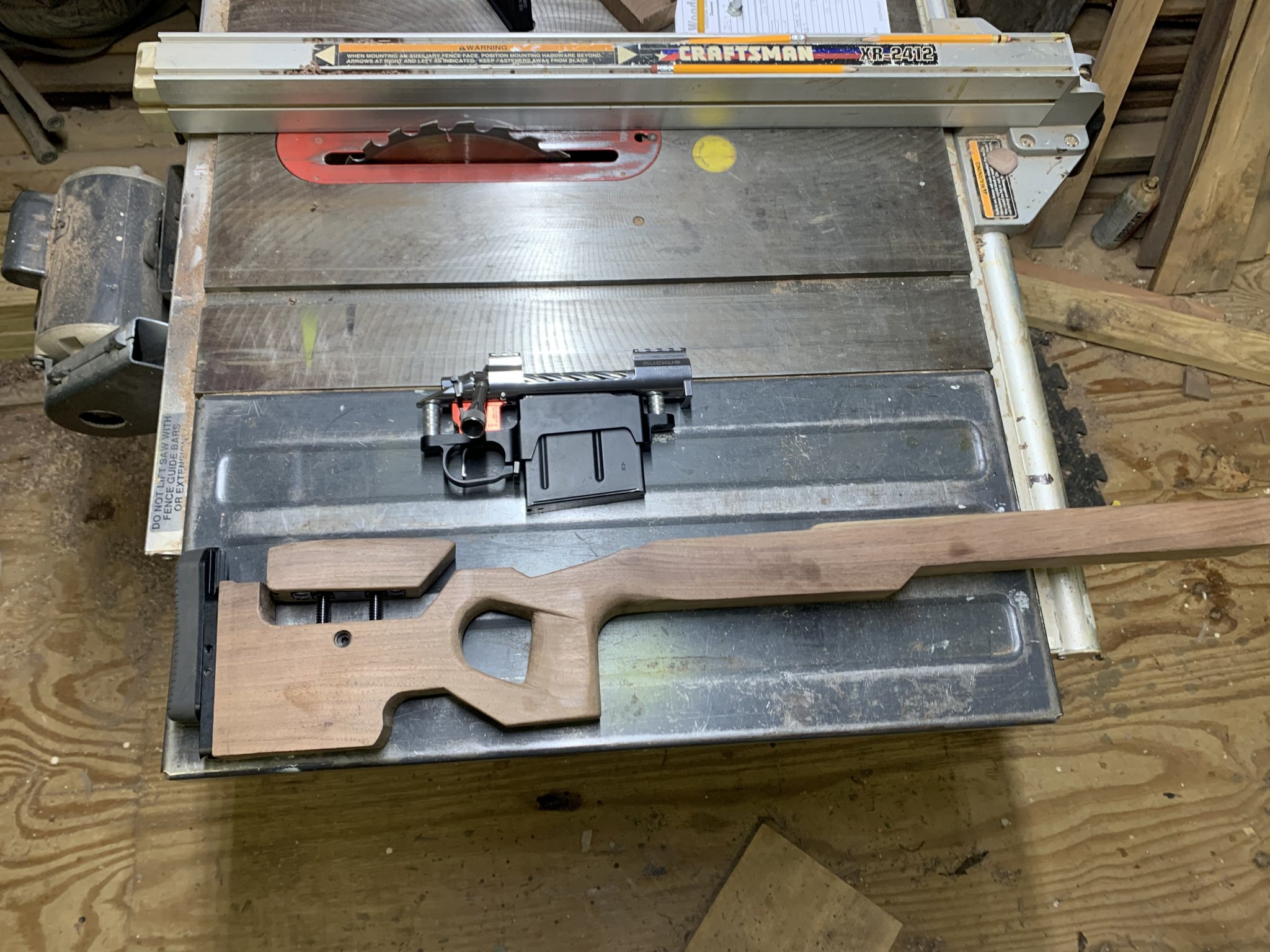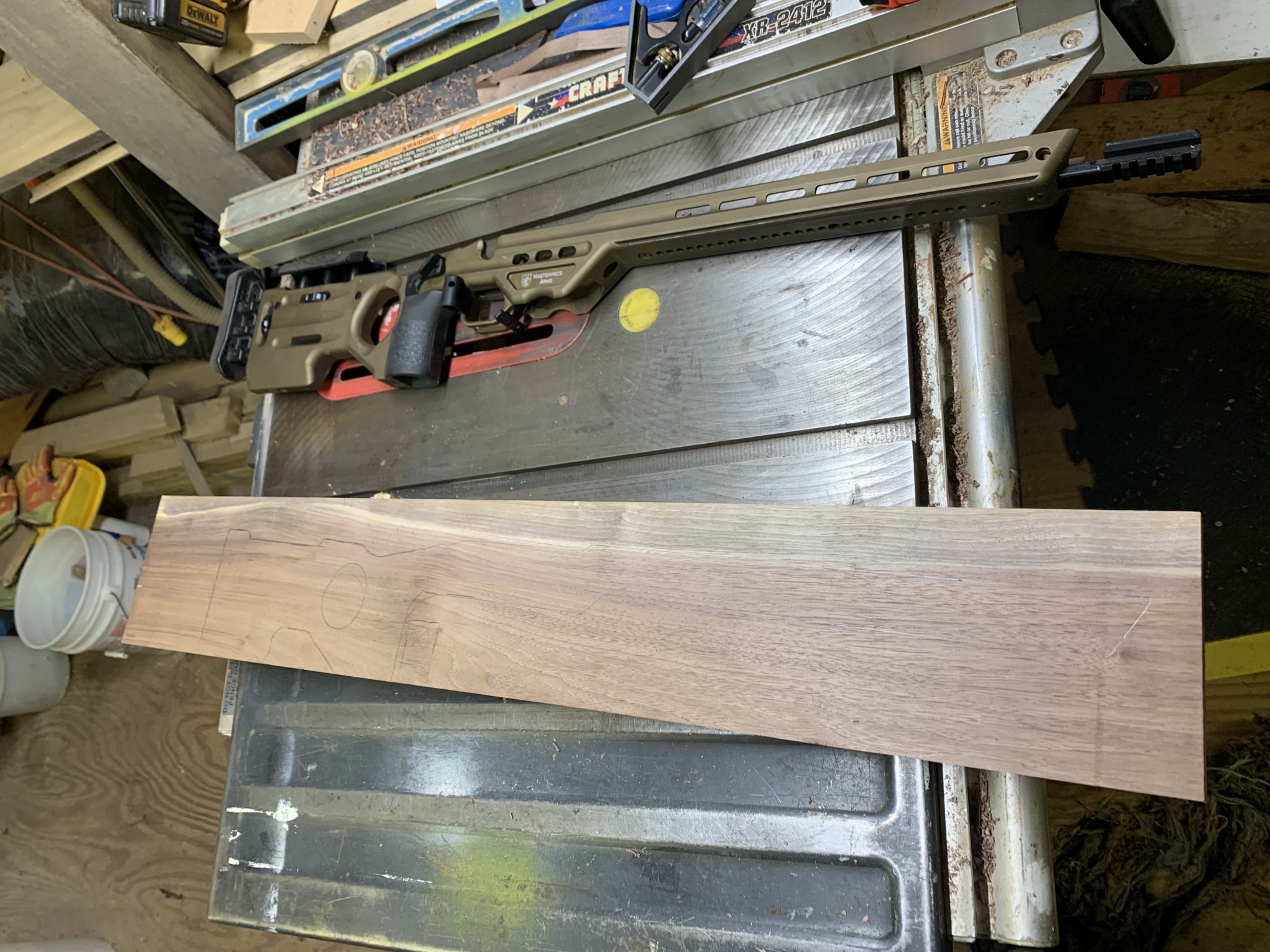 As of now here’s what I’ve done so far. I got a black walnut slab from a buddy at work that has been drying for the past couple years. I’m gonna build a 300 PRC with it. Here’s the build list so far