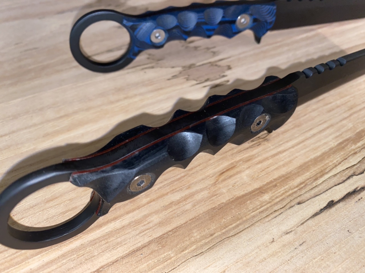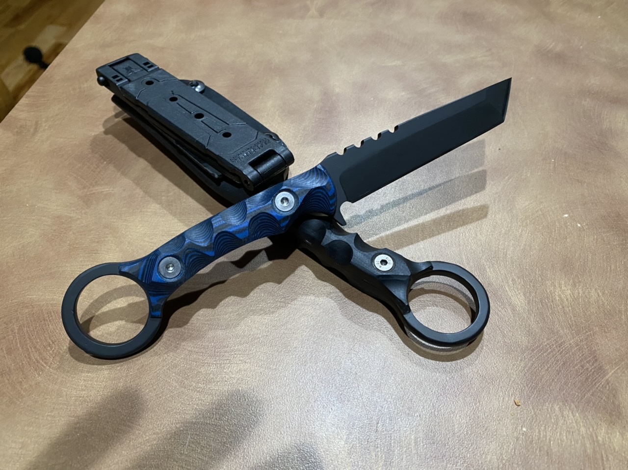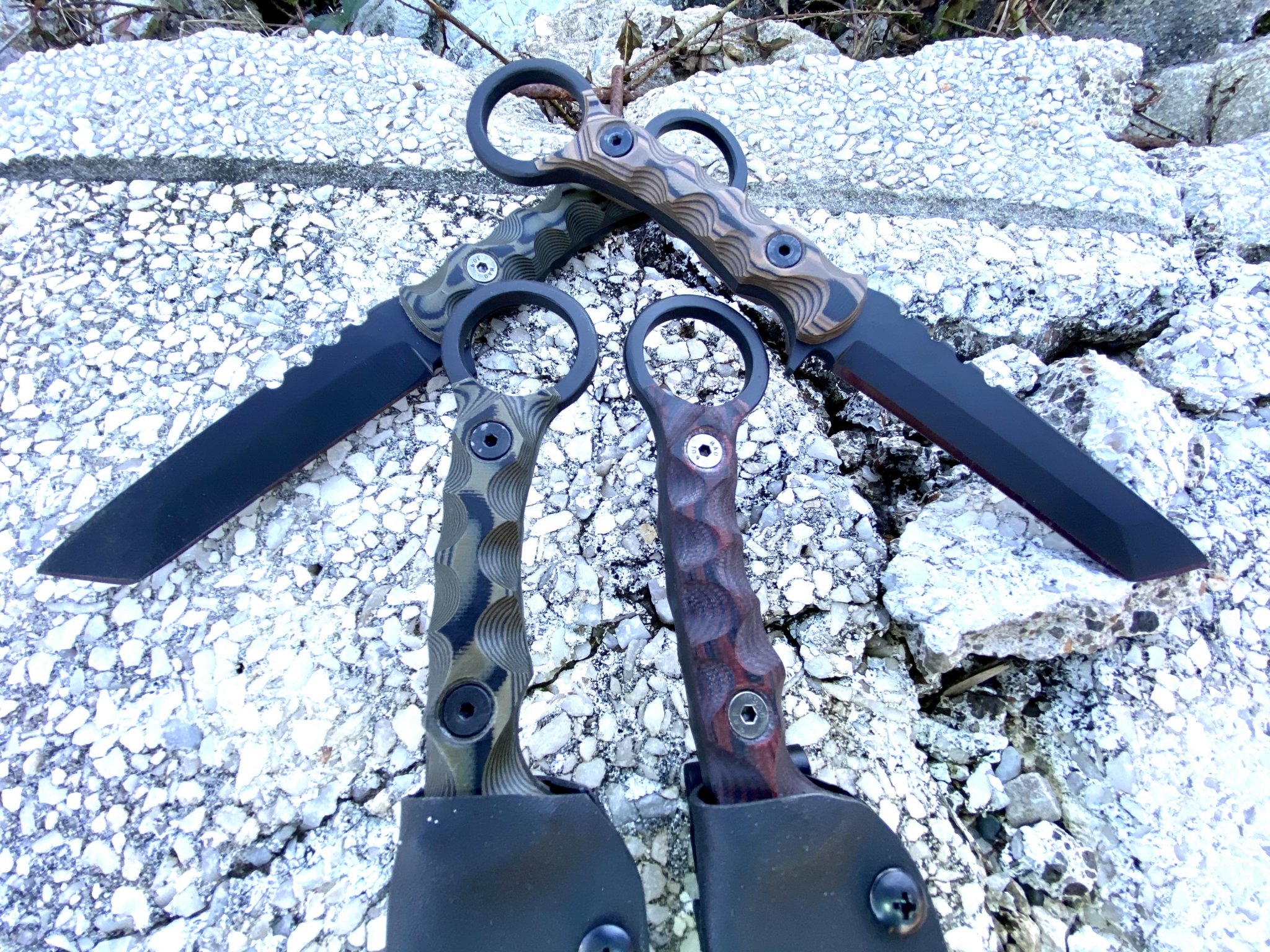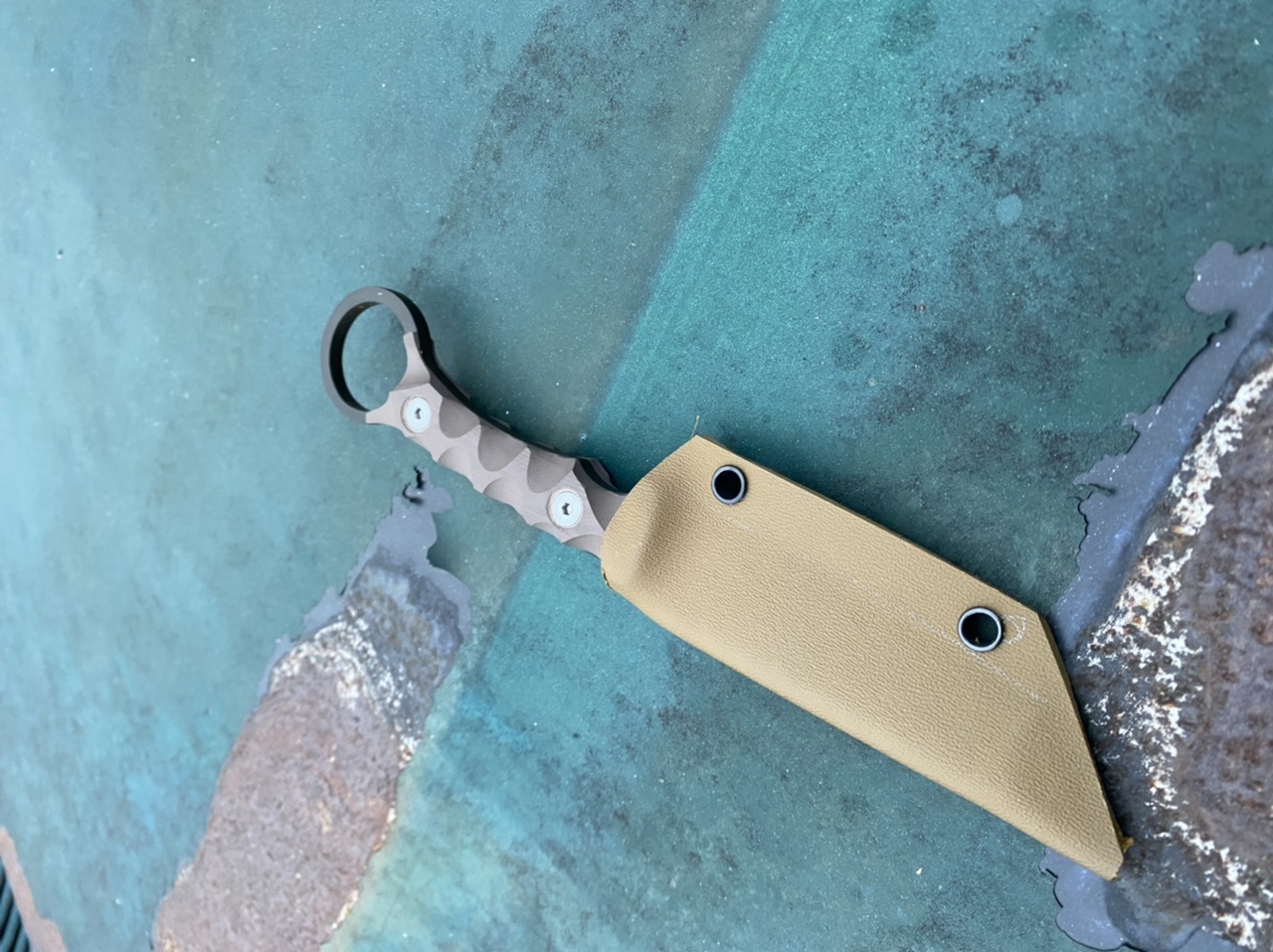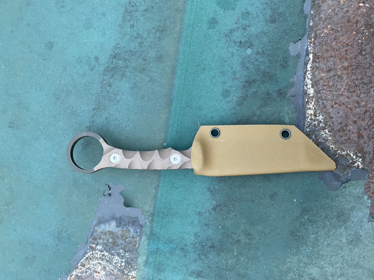 I started to make some knives. The steel is 3/16 thick 1095 with g10 handles. They come with a Kydex sheath with blade tech molle attachment for a plate carrier or a ulticlip belt attachment. These are made to be used and abused. I can take order for particular color combinations. The overall length is 8.75 with a blade length 3.75.