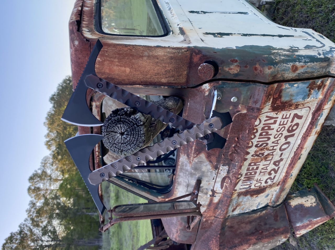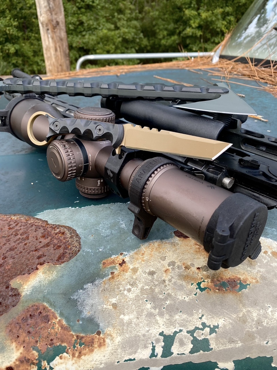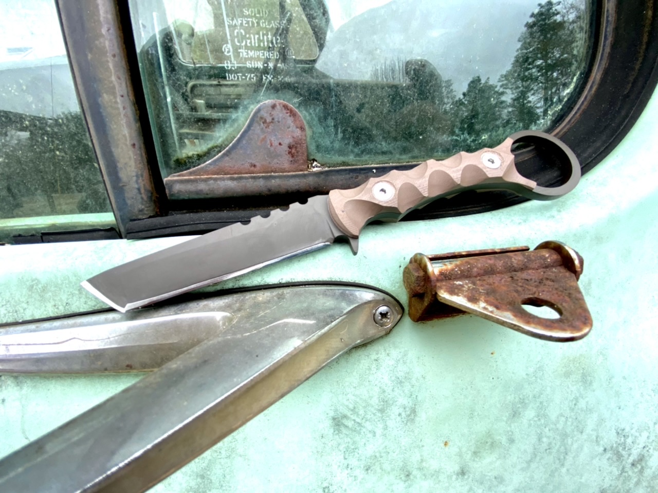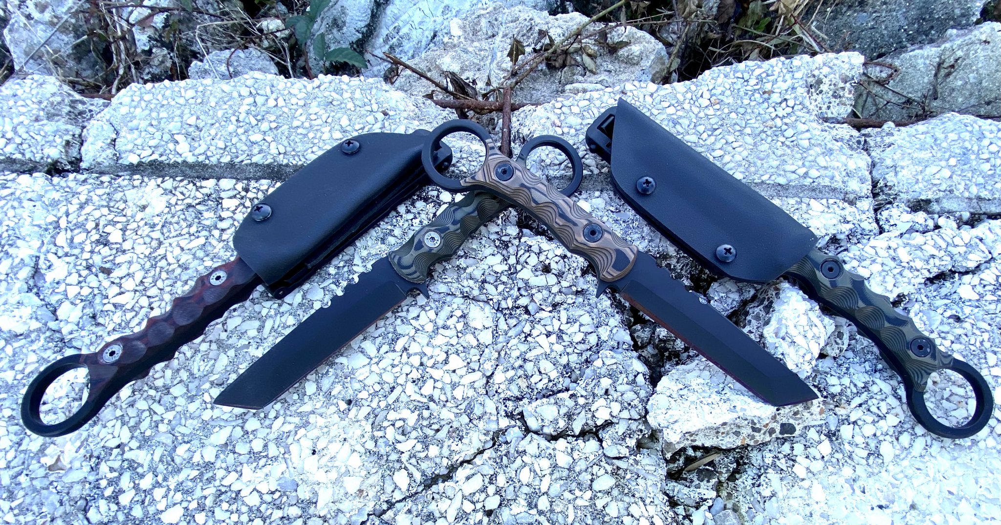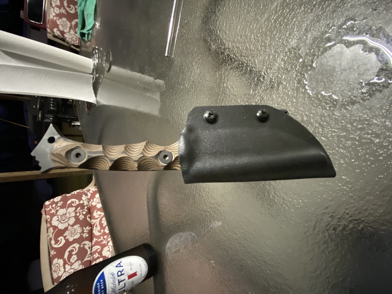 I started to make some knives. The steel is 3/16 thick 1095 with g10 handles. They come with a Kydex sheath with blade tech molle attachment for a plate carrier or a ulticlip belt attachment. These are made to be used and abused. I can take order for particular color combinations. The overall length is 8.75 with a blade length 3.75.