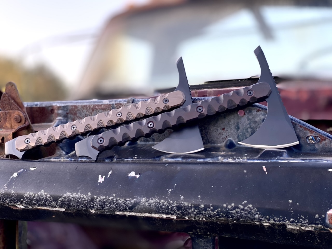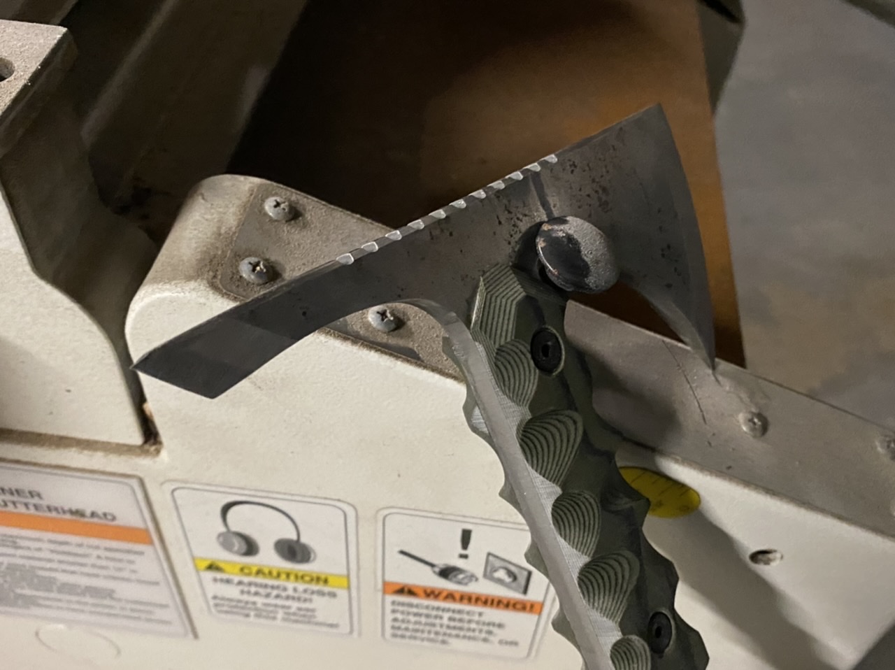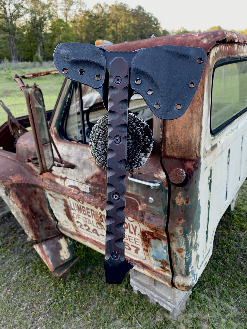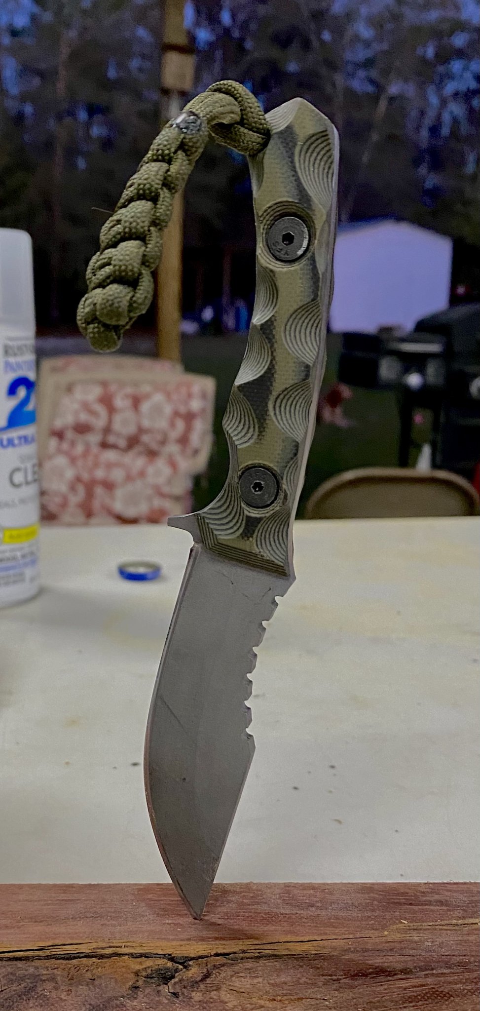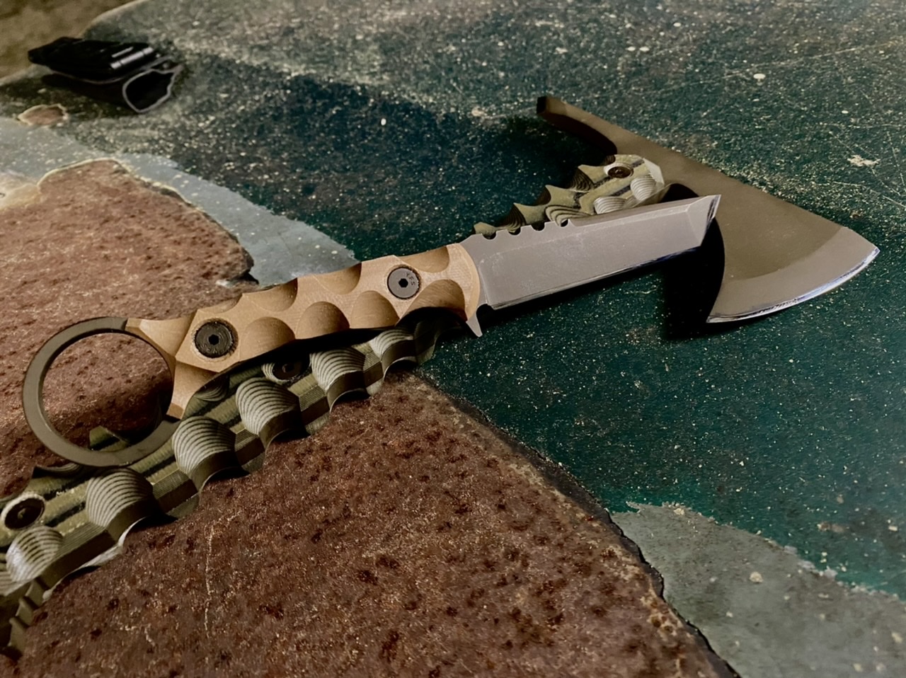 I haven’t been making as many knives of late as I am also a woodworker and was commissioned to make a kitchen island out of rough cut slabs I have. I am very busy but I will make some tomahawks in the next week or so. I have a large 12” and a smaller 11” one that has been seen in pictures. I have an OD green one that I will sell but haven’t posted it anywhere as it was a the first prototype.