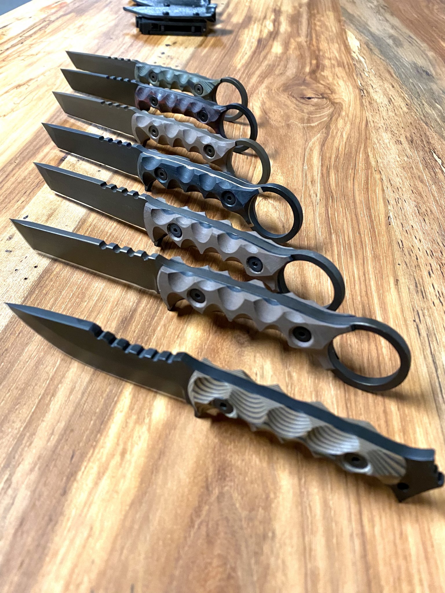 Got my 4-color camo tanto today. Very pleased. You can see the “imperfections” of a handmade knife, versus the perfect copies of mass production knives. The imperfections actually add to the aesthetic IMO.