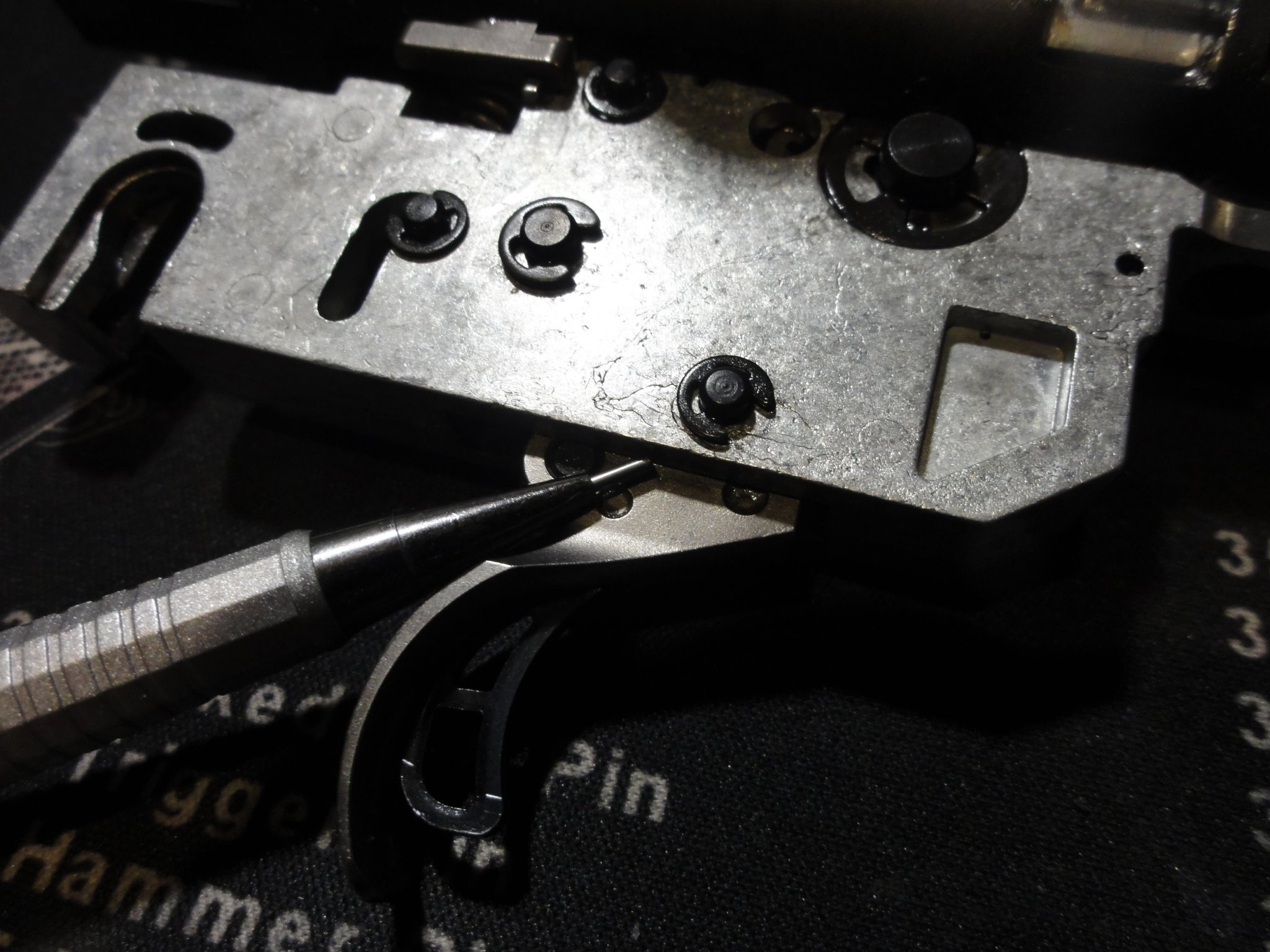 I highly recommend you make the pin a slip fit in the trigger blade. It is so tight that it bent my brass pin punch and was starting to bend my steel punch.