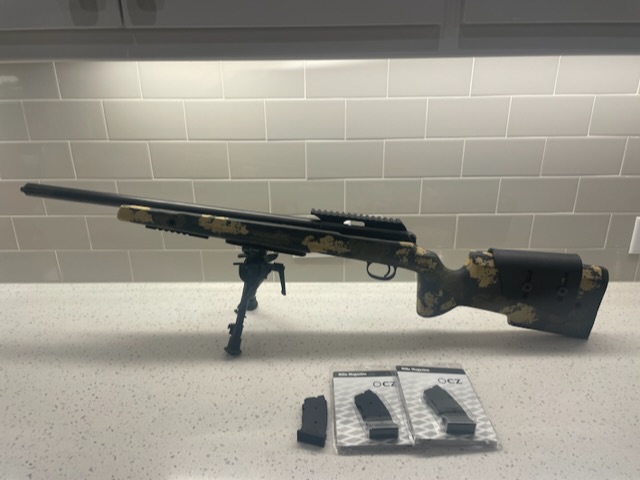 Selling my CZ 457 trainer with the manners factory stock. It has a kudex adjustable cheek rest, area 419 15moa sxope rail, area 419 bolt handle, area 419 arca rail and separate pic rail on bottom of stock and comes with 3 10 round mags two of them are new. Do not have the thread protector and bipod is not included. Asking $1150 in the DFW area in Texas. Can also ship within the state. May be open to shipping to other states but would only attempt with FFL listed on ship my gun.