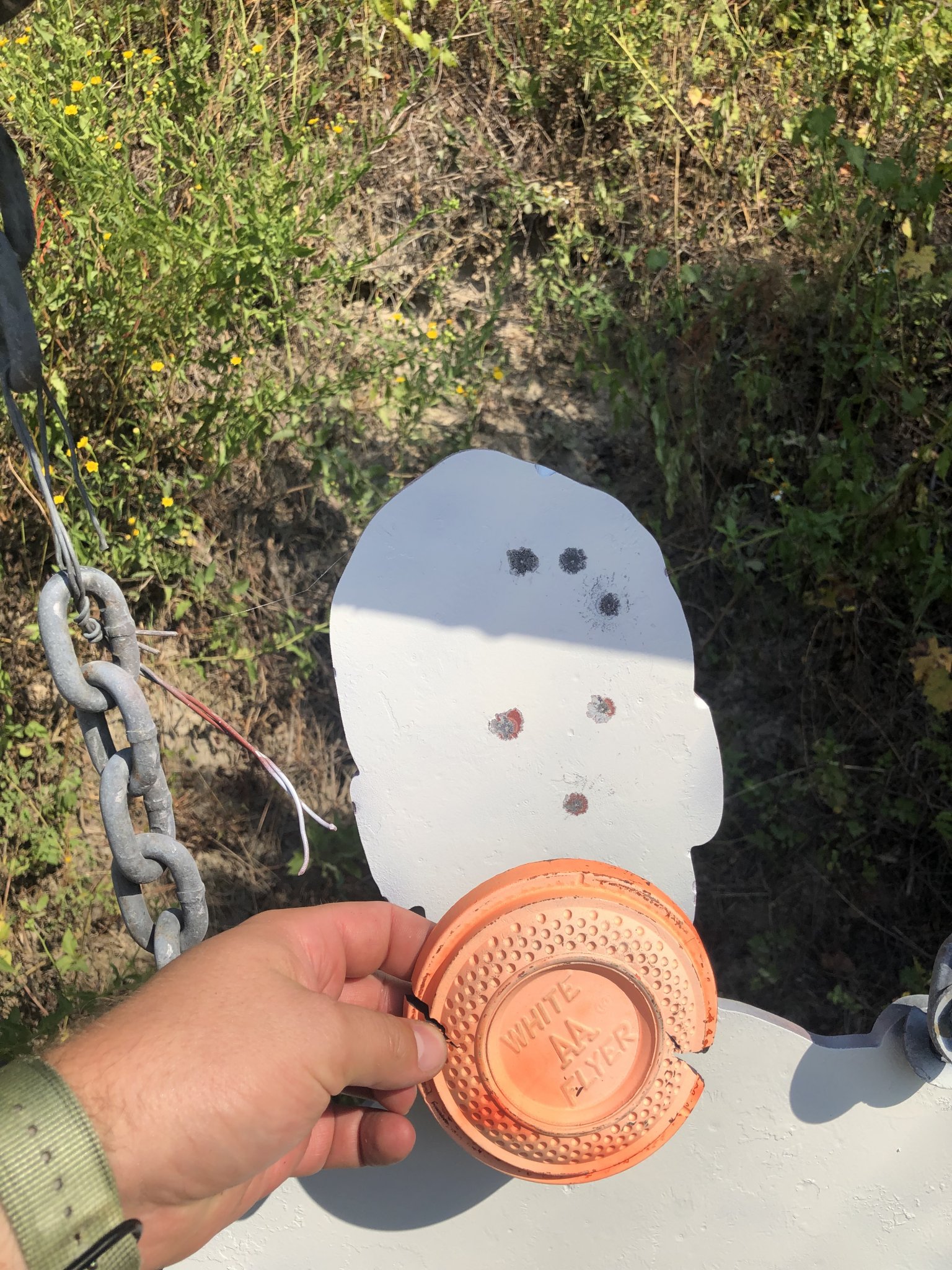 Took it out to 300yrds today. 6 shots at the head after finding the correct dope. 6 impacts. The two groups are 5 rounds of center X and 5 rounds of SK Long Range Match. From 50 yards.