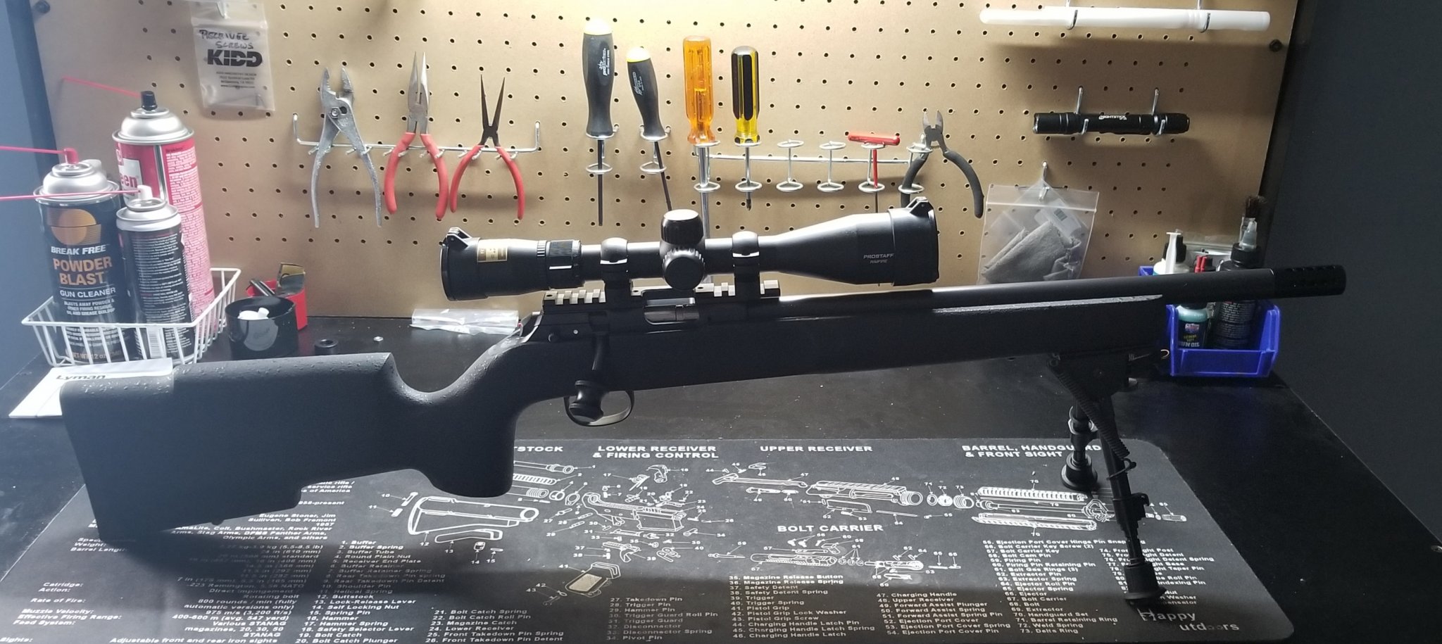 I took my Pro Varmit out today for the first time.. just mounted up a Nikon 3-9×40 that I had on hand..have an Athlon Midas Tac 6-24x50 that will be going on after I get the rings later this week.. I shot 175 rounds of CCI sv and seemed good..some real good groups and then some opened up a bit.. Switched to SK Rifle Match and shot 50 rounds of it.. groups under a 1/2".. at 50 yards..very pleased with how this rifle performed..just took the bolt out and polished it a little to get the roughness out of it..haven't touched the trigger yet..