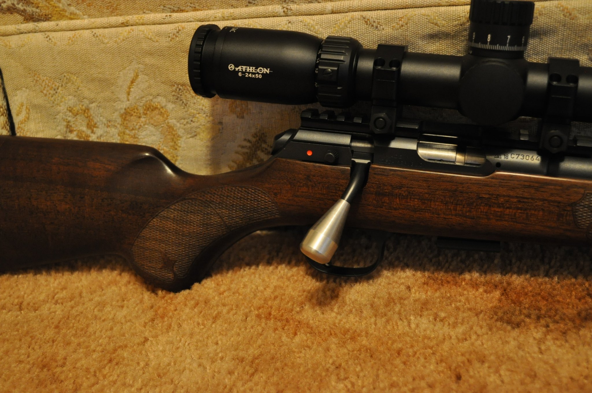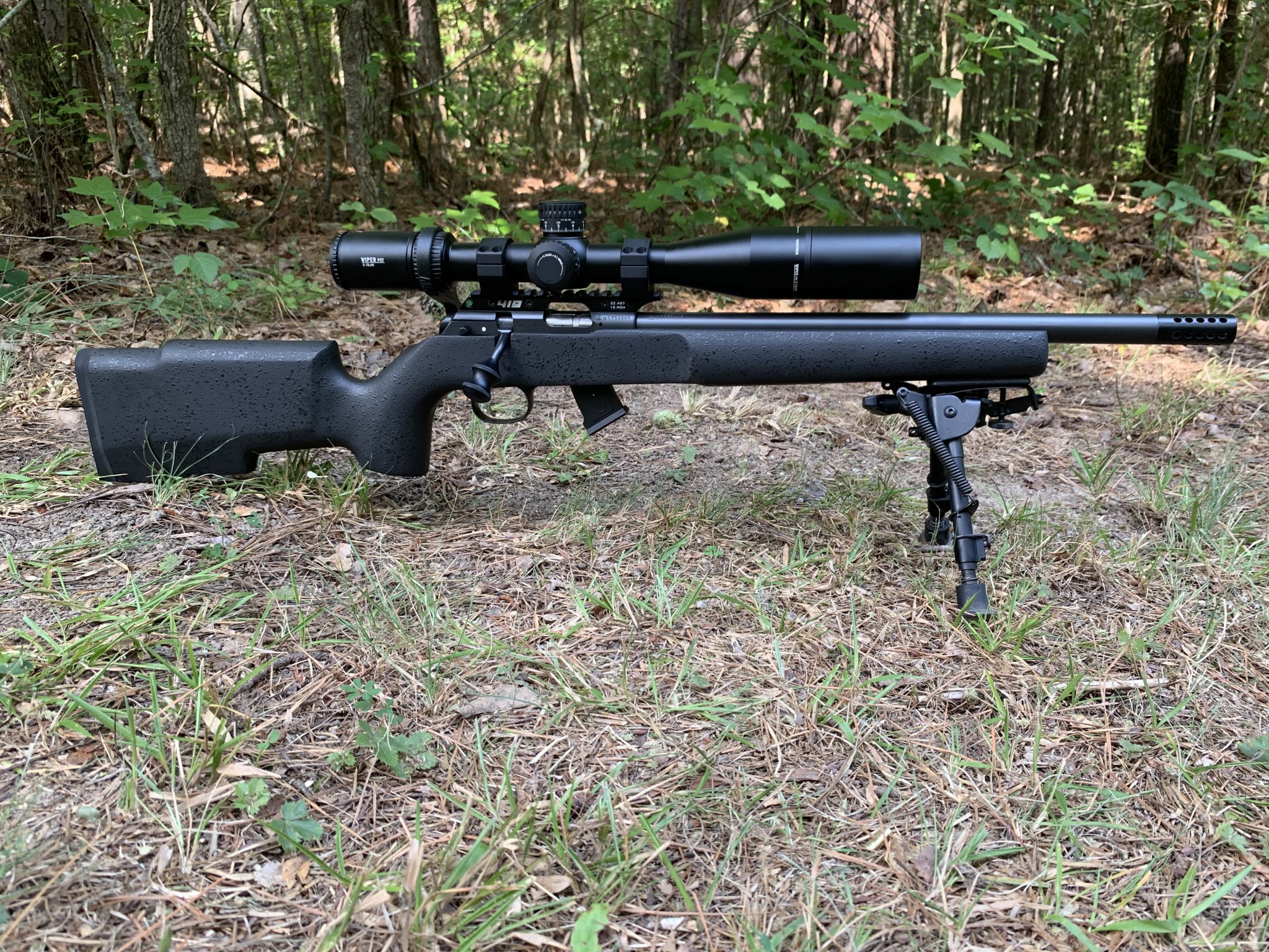 I bought my 22LR 457 American late January, and had no really decent weather to shoot until mid-March. Naturally, I tried doing some shooting in really cold weather, and blamed the poor accuracy mostly on cold & wind. However, accuracy didn't improve much when we had much more moderate temps in April. We're talking 2+ MOA, with any of the proven good lots of SK & Lapua ammo that I'd been shooting in converted 40X repeaters & V-22s. I pulled the OEM bbl and re-cut a precise 11* crown, which did help a bit, but after experiencing the accuracy of my custom-bbl'd 40Xs & V-22, I just couldn't put up with the American's factory bbl., so replaced it with a Shilen ratchet rifled select match that I'd chambered with a PTG EPS reamer. There was a large improvement in accuracy, as you'd expect from a quality custom bbl with match chamber. I'm going to drill out the plastic pillars and replace them with aluminum ones, then bed the action, in an attempt to further improve accuracy. Also intend to order Yo Dave trigger spring to see if I can get the trigger break down around 8oz. I put a BScar 25 MOA rail on it, then mounted an Athlon Midas TAC 6-24x50 mil scope in TPS TSR rings, and have been very pleased with that combination, as it's low enough so I get a good cheek weld w/o stock pack or other raised cheek piece.