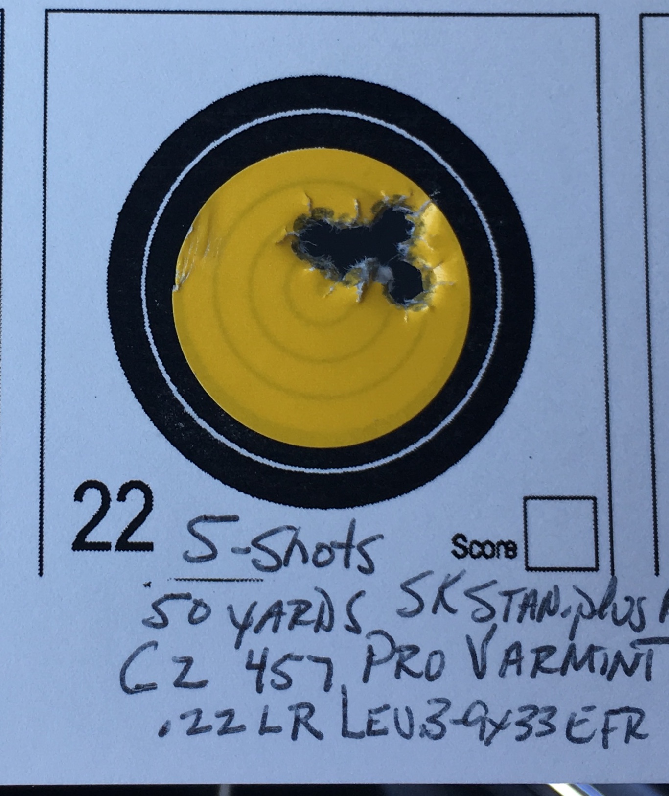 I purchased the 457 PV a few days ago. At this point, it appears to favor SK Standard Plus. The scope is an older "coin click" Leupold 3-9x33 EFR. A solid compact rig that has enough weight for me to hold steady and a shorter barrel for maneuverability in the squirrel woods.