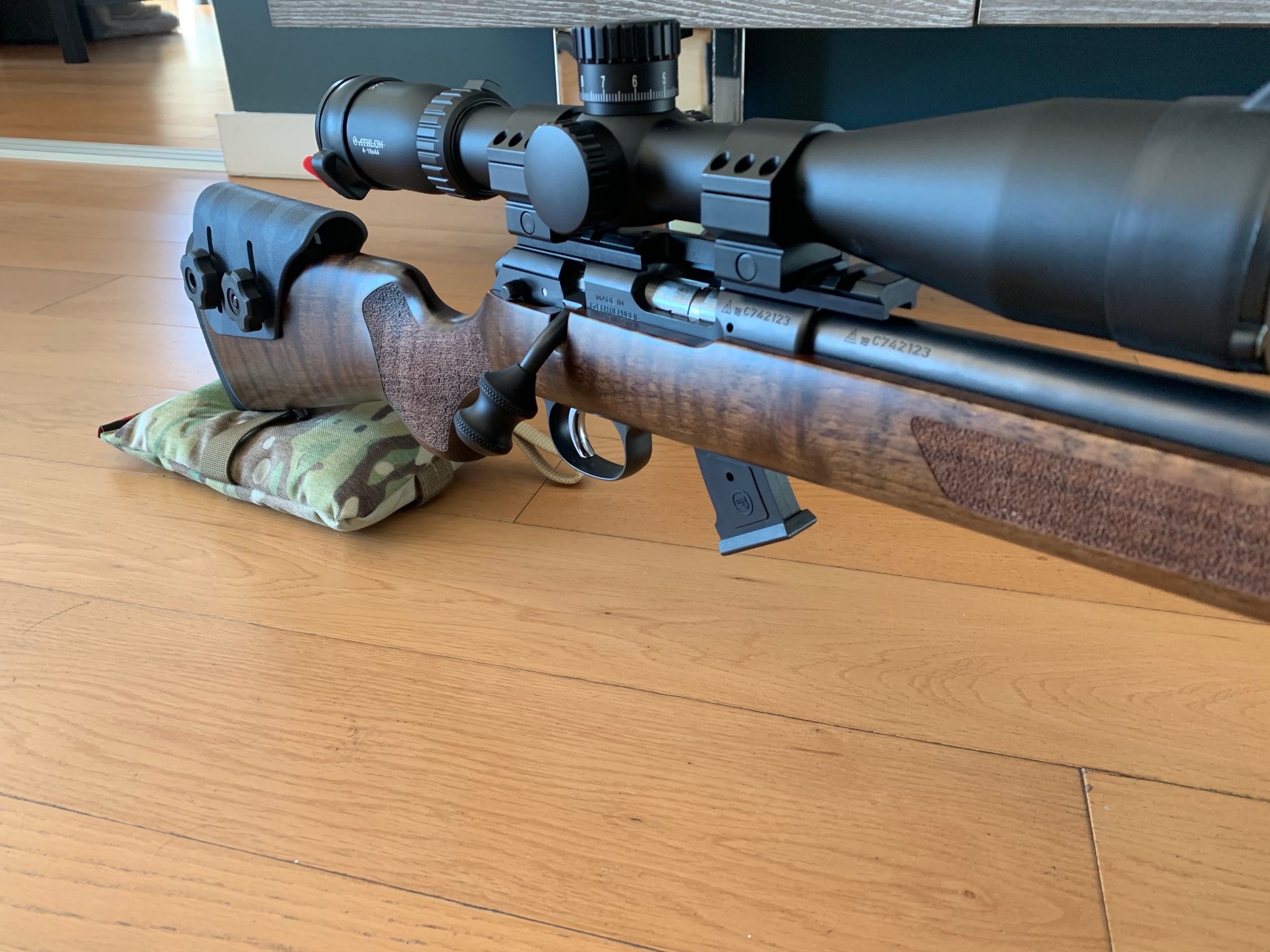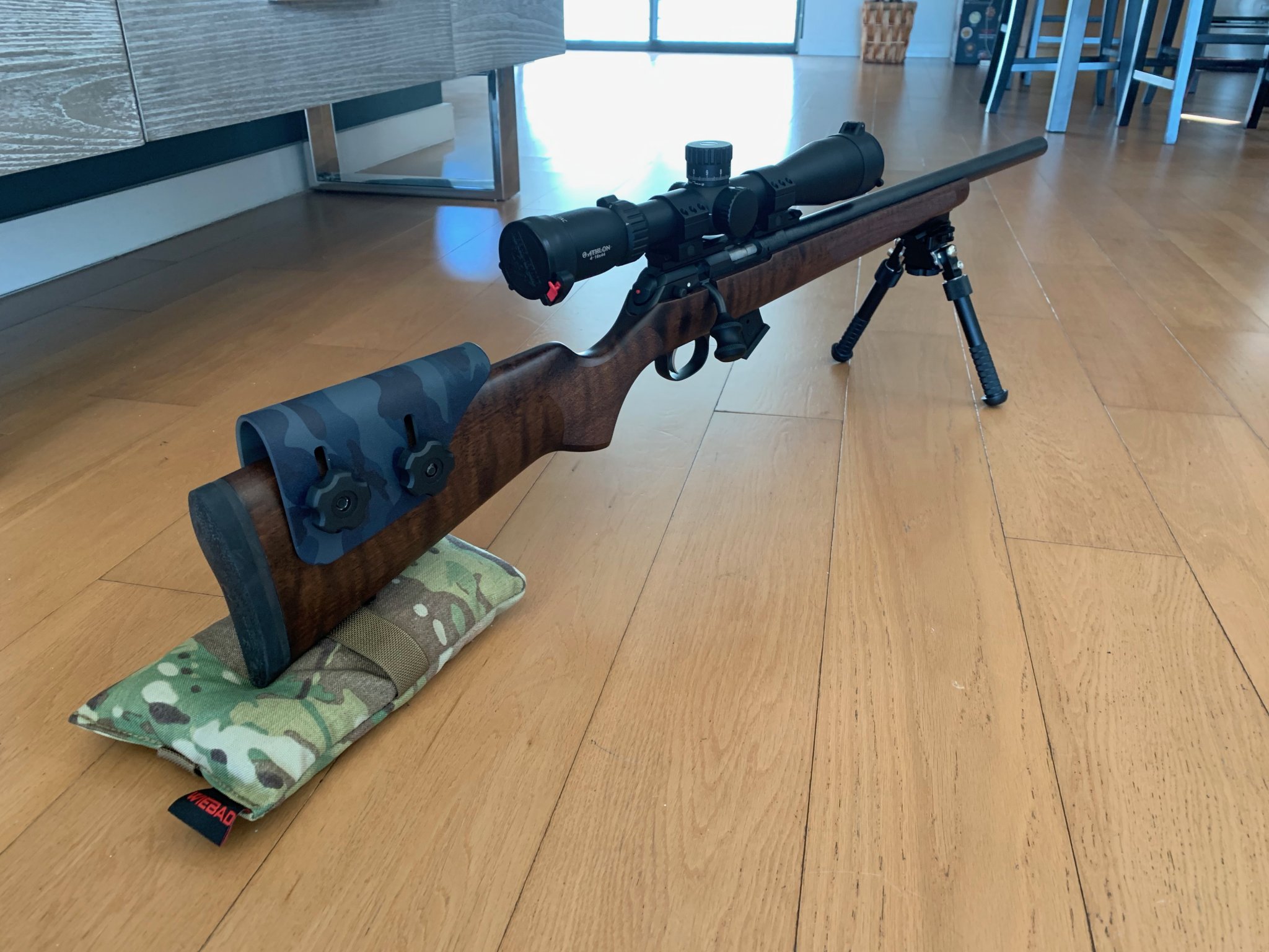 Pic of your o-ring mod?If your going to run the cheek riser ( or butt pad) out near it's limits, you'll find that the adjustment gets wobbly. You're going to want to stack some hard rubber 0-rings on the rods to stabilize them. As for adding a pad, I've been using the anarchy outdoors brand on my Bergara and CZ's. Quality is good but they are only 1/8" thick. Last I looked, they had a cut your own generic option.