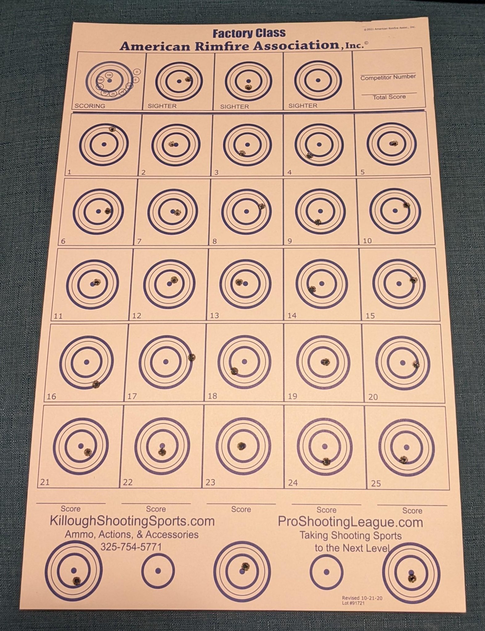 Isn't it supposed to be 65 in. Lbs on the action screws and 45 in. Lbs on the tang screw?So I've goon from good to quite poor. White target on left was show with my CZ 457 w/ Lilja barrel and Timney trigger in KRG Bravo chassis. SK rifle Match at 50 yrds. Timid wind, 3-4 mph. Orange target is three weeks later with same set up. I suspected a dirty bore and so got to cleaning. Soaked the carbon ring and brushed it with nylon brush. Ran Rimfire Blend through the barrel. Set the action screws to 45 Lbs. Went out was at range at Markham and got the same results as the Orang target(left it in truck) Two Ranger Officers took turns and got same results. Didn't hold for wind, just straight on target. I am at a bit of a loss at what is going on? Cleaned the bolt, though didn't disassemble it. Cleaned all the usual places. Never been dropped or banged around. I am quite frustrated, and honestly don't know what is going on on and how to correct it.
